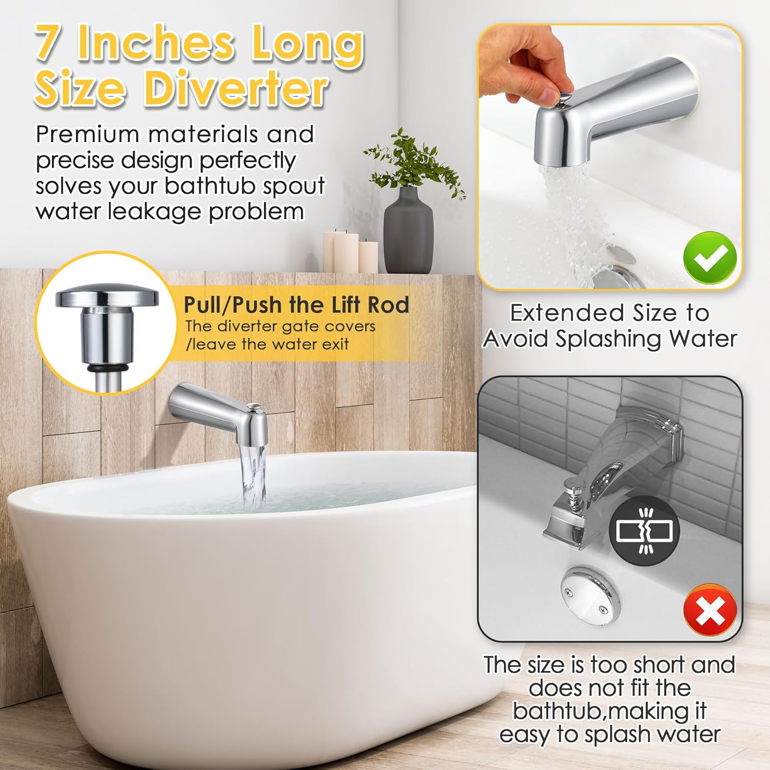 | Additional Features | Diverter for switching water flow between tub and shower |