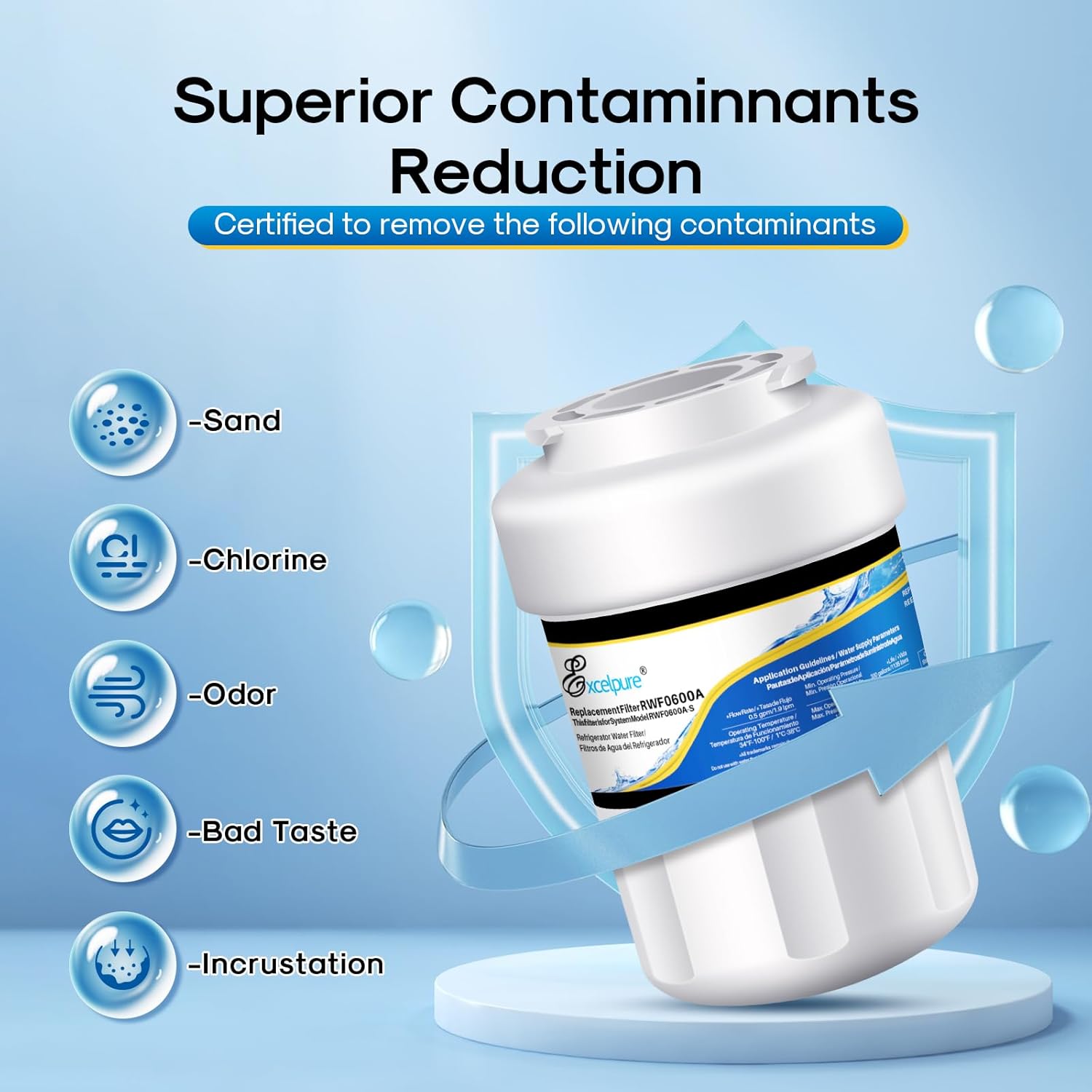 | Product Benefits | Reduces chlorine, lead, and BPA in water |