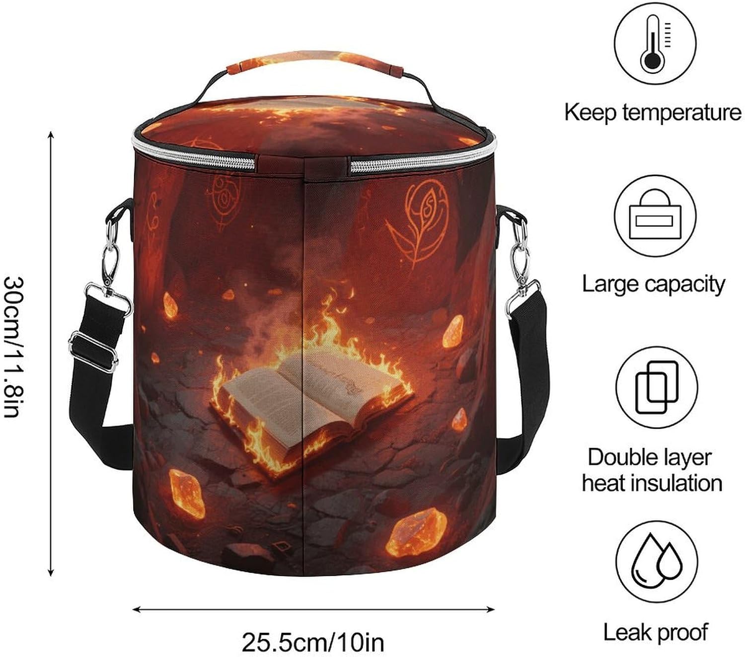 Keep Your Adventures Fresh and Mess-Free!Our Fantasy Books Picnic Basket is designed to elevate your outdoor experiences. Whether you're planning a family picnic, a day at the beach, or a long camping trip, this bag ensures your food stays cold, your drinks chilled, and your belongings organized without any leaks.KEEPS THINGS COLD & INSULATEDConstructed with high-quality polyester and advanced insulation technology, this bag provides excellent thermal retention to protect your perishables.UNMATCHED PERFORMANCEThe leakproof design means you never have to worry about dealing with watery messes from melting ice packs again. The large, wide-opening top makes loading and unloading a breeze, and the heavy-duty zipper secures everything inside.COMFORT AND PORTABILITYWe've equipped this Fantasy Books cooler bag with an adjustable shoulder strap to distribute weight evenly and reduce strain, even when the bag is fully loaded. The additional padded top handle offers a comfortable alternative for carrying.READY FOR ANYTHINGYour ultimate partner for adventure, this versatile tote is suited for a wide range of activities: camping, hiking, beach trips, barbecues, road trips, and daily grocery shopping. It's also a smart addition to your car emergency kit or disaster preparedness supplies.EASY TO STORE AND MAINTAINWhen not in use, its collapsible design allows for compact storage, saving precious space in your car or closet. To keep your cooler bag in great condition, we recommend hand washing or machine washing with mild detergent. Do not bleach or soak for extended periods. Allow to air dry thoroughly before storing.Size:10 x 11.8 inches / 25.5 x 30cmI wish you a pleasant shopping experience!