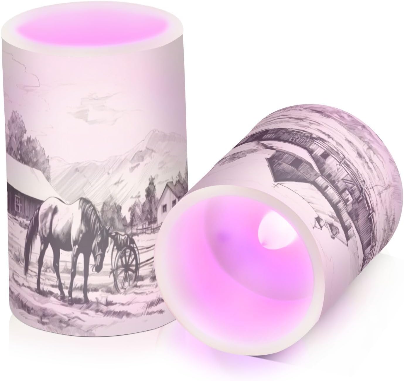 Flickering flameless candles, realistic LED candles, with remote control, set of 2, Customizable GreetingsProduct DescriptionMaterial: plastic, realistic lookingSize: large: diameter 3x5 inches, small diameter 3x4inFunctionON/OFF:turn on/off the light4H/8H:set to light for 4H/8Hours and turn off automaticallyMode:flame will get flickering or steady lightMulti color:change the multi color automaticallycolor:change to single color(which as the key color)Warm TipThe Led candles uses 3 AAA batteries, the remote control is a 3V electronic button, and the light and remote control are guaranteed for 12 months. Due to logistics reasons, this product does not include batteries, batteries need to be purchased on their own