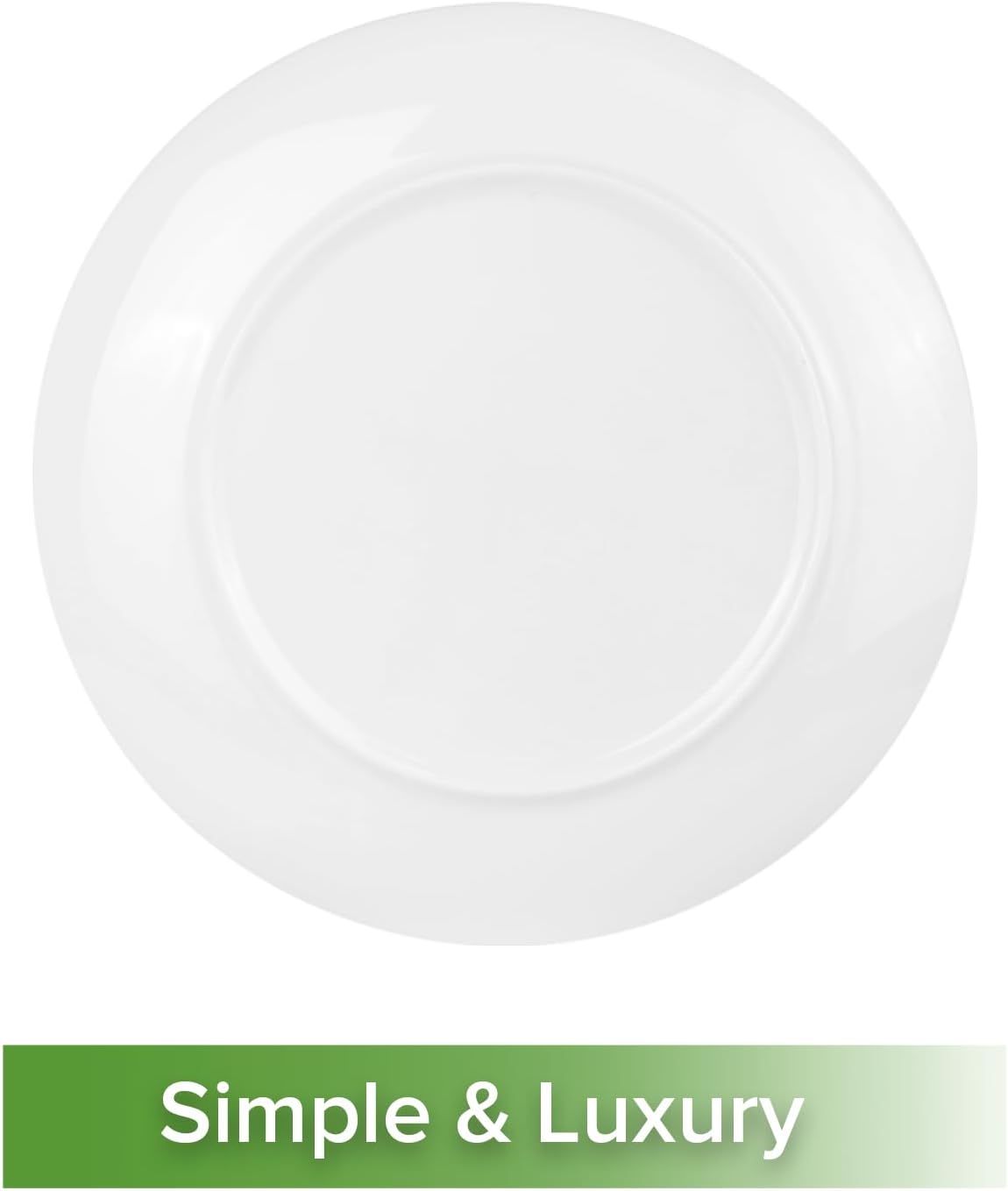 Elevate your dining experience with this exquisite set of 6 fine bone china dinner/dessert plates. The plate with 8 inches diamation, suite for service dessert bread and butter, pasta and so on, as cake plate and side plate. This plate material was made by fine bone china, Bone china was born in 18th century England. Due to the addition of herbivorous bone powder in its raw materials, the finished product has many characteristics compared to porcelain. Bone china is thin, lightweight, and presents a pure milky white color with good translucency. When struck, it has a crisp and long-lasting echo. Bone china is fired twice, and compared to porcelain, it has higher raw material costs and more complex production processes. These pristine white plates feature superior light transmission properties, showcasing your culinary presentations with elegant clarity. The plates are crafted with a perfect balance of durability and refinement - lightweight yet sturdy, with a thin profile that adds sophistication to your table setting. The fine glaze finish not only enhances their aesthetic appeal but also makes them remarkably easy to clean. Each plate boasts practical versatility, being both microwave and dishwasher safe for modern convenience. The high-quality bone china construction ensures excellent durability while maintaining a delicate appearance. These versatile plates are ideal for both everyday dining and special occasions, complementing any table décor with their timeless design. The smooth, glazed surface resists staining and maintains its pristine appearance through regular use, making these plates a lasting addition to your dinnerware collection.