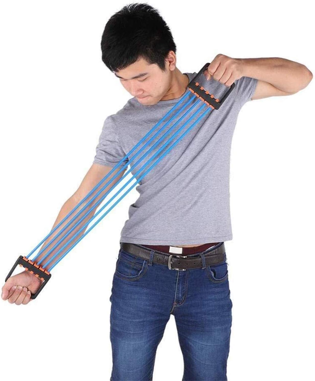 Specifications: Condition: 100% Item Type: Chest Expander Material: TPE Optional Color: Yellow, Green, Blue Length: Approx63cm 24.8inch Width: Approx11.5cm 4.5inch Weight: Approx305g 10.8oz Packing List: 1 * Chest Expander Technical Details: Color: Blue name: