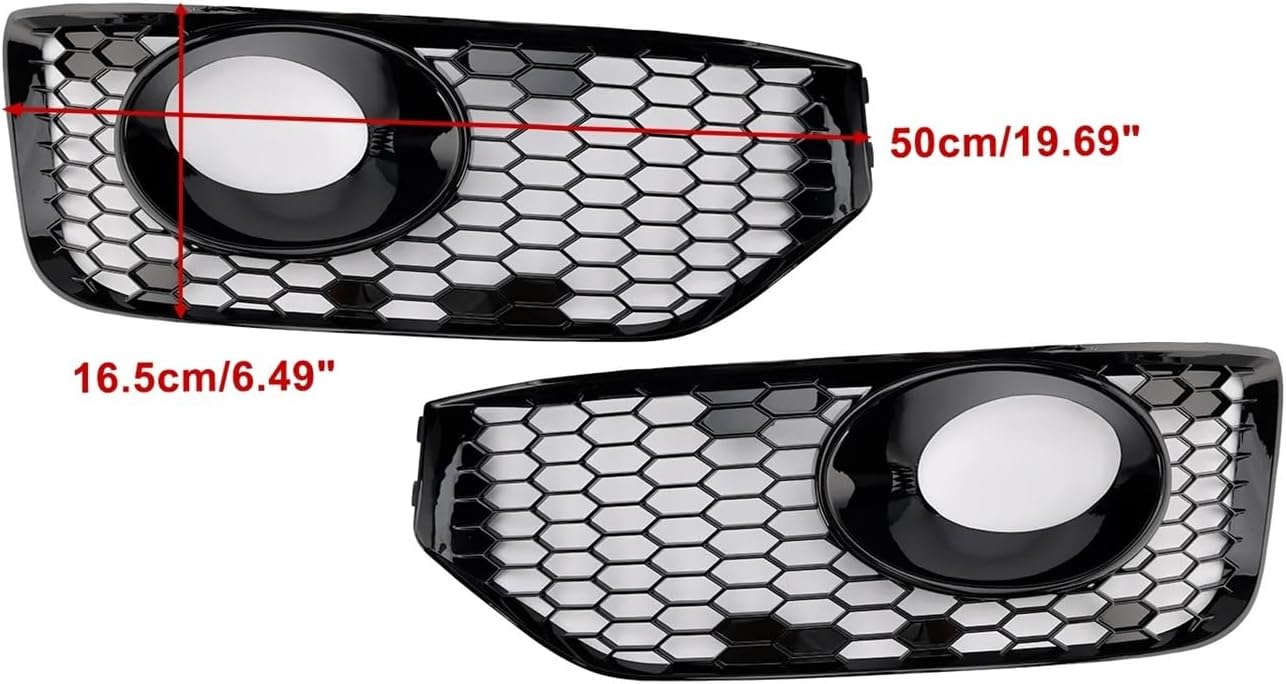 Scientific hollow mesh structure ensures good air flow and fast heat dissipation, mud and debris to reducing fog light wear. 3D scanned from original vehicle data, 1:1 restore radian, holes and clips. No gap, no warping, no loosening, direct replacement. Strengthens front bumper sporty sense, upgrades vehicle grade and visual impact. Small modification brings a huge visual upgrade. Made of high-toughness material, shockproof, scratch-resistant, high & low temperature resistant, anti-UV and fade-proof, longer service life. Fog Lamp Light Cover Insert Grille Compatible For VW T5 T5.1 2010-2015 Compatible For S-line Gloss Black