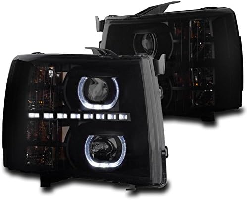 Fitment: Compatible with 2007-2013 Chevy Silverado 1500Compatible with 2007-2014 Chevy Silverado 2500 HDCompatible with 2007-2014 Chevy Silverado 3500 HD*Do not fit 2007 Silverado Classic models Feature: Latest Halo and LED Design Description: 100% Brand new in boxHeavy duty polycarbonate lens offers superior UV protection and a high impact resistanceMade by an ISO certified manufacturer using materials that meets OE standardsNo installation instruction included, professional installation is recommendedThis is an aftermarket replacement product and not affiliated with any other brands or manufacturers Note: Headlights come with H3 halogen bulbs on low beams and H1 on high beams