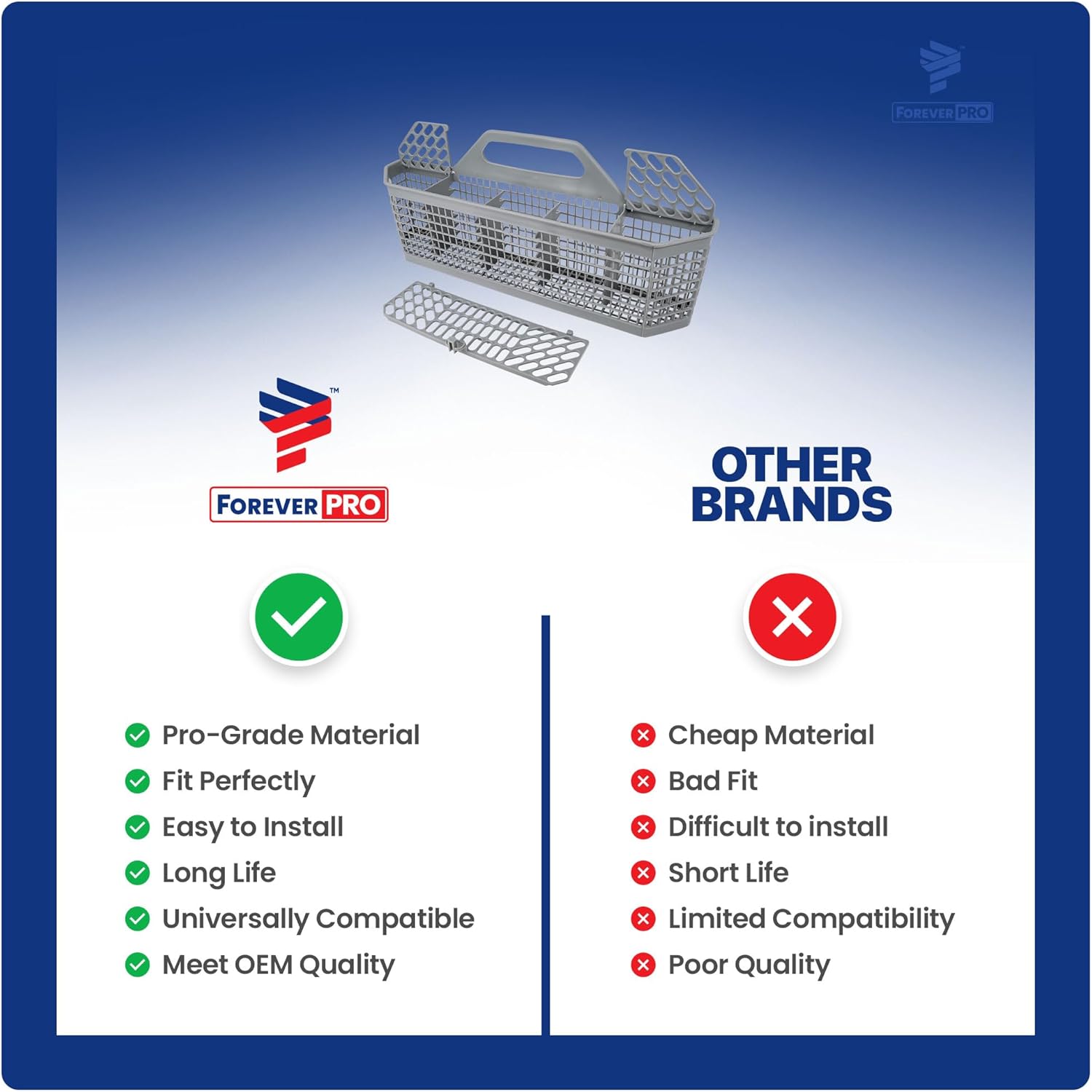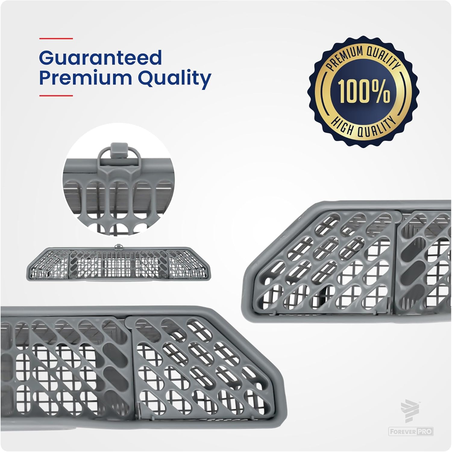 Introducing the ForeverPRO WD28X10128 silverware rack for dishwasher, an essential addition to any kitchen. This product has been designed to perfectly replace your old or broken dishwasher basket with ease. It is a universal dishwasher utensil basket that is compatible with GE dishwasher and fits Kenmore dishwasher models. This dishwasher basket for utensils is as durable as it is versatile, promising to offer a long-lasting solution to your dishwashing needs. The ForeverPRO dishwasher silverware basket comes with a flaps open design for an easy installation process. You will appreciate the convenience of this design as it contributes to making your dishwashing more efficient and less time-consuming. The compatible with GE dishwasher utensil basket is equipped with 5 spaces, including 3 square pockets and 2 corner pockets. This thoughtful design of this compatible with GE silverware basket for dishwasher ensures maximum space utilization, making it perfect for washing all your utensils at once. Not just a dishwasher basket, this product also functions as a dishwasher cutlery basket or dishwasher utensil basket replacement. It has been designed with your needs in mind, serving as a dishwasher knife basket as well. This feature ensures that even your sharpest kitchen tools are safely and effectively cleaned with this compatible with ge dishwasher silverware basket replacement. It is a truly universal dishwasher silverware basket that will seamlessly fit into your existing dishwasher setup. It also serves as a dishwasher silverware rack, making it a versatile choice for any kitchen. The ForeverPRO dishwasher basket is not just a replacement part, it's an upgrade for your dishwasher. With its latch dishwasher basket feature, it ensures that all your utensils are securely held in place during the wash cycle. Whether you need a replacement silverware basket for dishwasher, a dishwasher basket replacement, a compatible with GE dishwasher basket replacement, or a fits Kenmore ultra wash dishwasher silverware basket, this dishwasher silverware basket universal is the ideal choice for you among all dishwasher silverware baskets. In summary, the ForeverPRO WD28X10128 Dishwasher Silverware Basket Replacement is a high-quality, durable, and easy-to-install solution for your dishwasher. This silverware tray for dishwasher is the ultimate utensil dishwasher basket / dishwasher rack for silverware / dishwasher basket combo you need to upgrade your dishwashing experience.