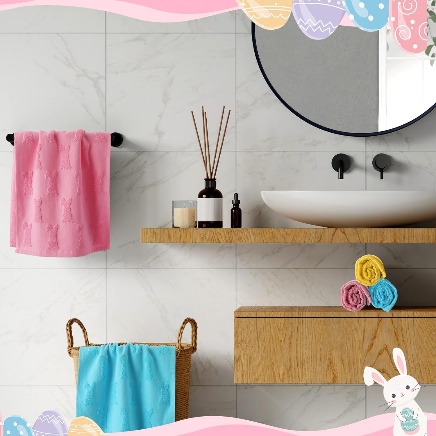Features: Nice Gift: The bunny decorative towels are nice and useful, and can be chosen as gifts for family members, partners, coworkers and friends. They will be happy to get them. Easter Cute Design: Our Easter hand towels are printed with lovely rabbit elements. They are suitable for decorating your home, can easily catch the attention of guests at spring parties. Specifications: Material: coral fleece Color: light yellow, light blue, pink Size: about 12.4 x 28.3 inches/ 31.5 x 72 cm Package includes: 6 x Easter jacquard hand towels Notes: Manual measurement, please allow slight errors on size. The color may exist a slight difference due to different screen displays