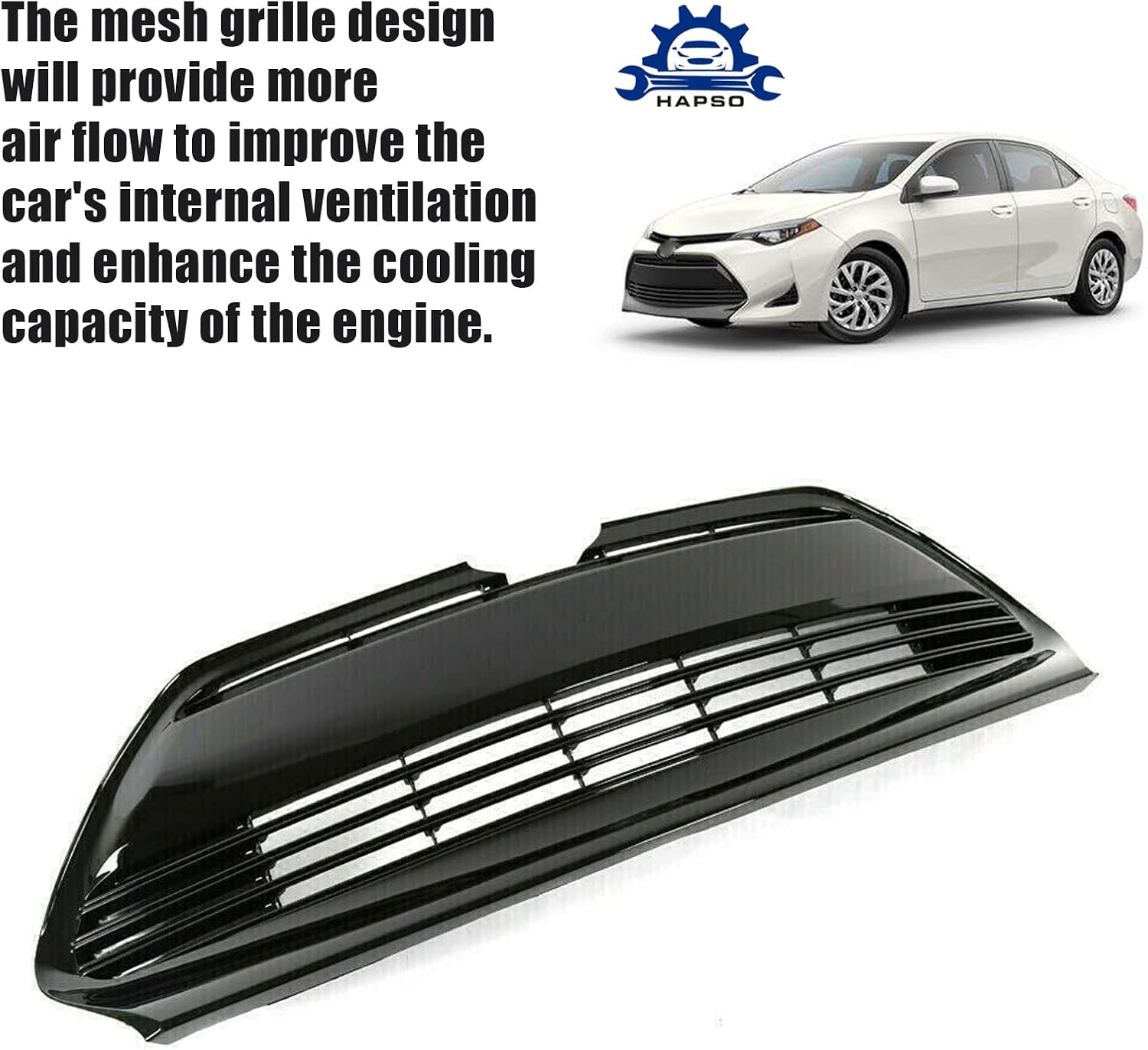 Whether you're looking to upgrade the performance of your vehicle or simply replace a faulty part, you can always count on HAPSO to provide you with reliable products and exceptional support.A New Front Bumper Lower Grille Fit For 2017-2019 Toyota Corolla CE/L/LE/XLE Sedan Bumper Grill Cover Glossy Black Grill AssemblyFeatures:Made Of High quality ABS Plastic, withstand rough road wear and the test of time, ensure a long-lasting outdoor usage.Provides better airflow to the radiator to help the cooling process better.Easy to install. Our front upper grill can directly replace the original grille without any cutting or drilling.Superior Durability and Impact Resistance. Heat resistant, corrosion resistant and not easily bent or cracked.Specification:Brand: HAPSOMaterials: PlasticColor: Glossy BlackFitment Type: Direct ReplacementOE/OEM Part Number: 5311202730Interchange Part Number: TO1036170Package Include: 1 x Front Bumper Lower GrilleRange Of Application: Fit For 2017-2019 Toyota Corolla CE/L/LE/XLE Sedan.Thank you for your purchase and support!