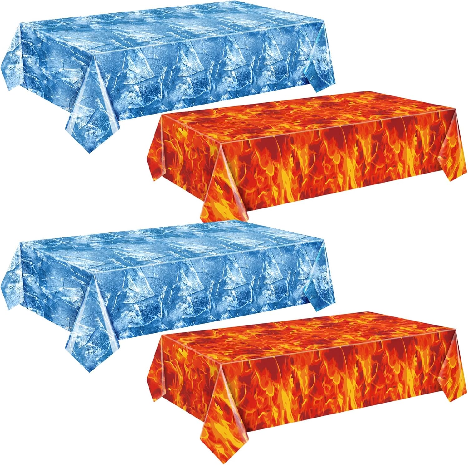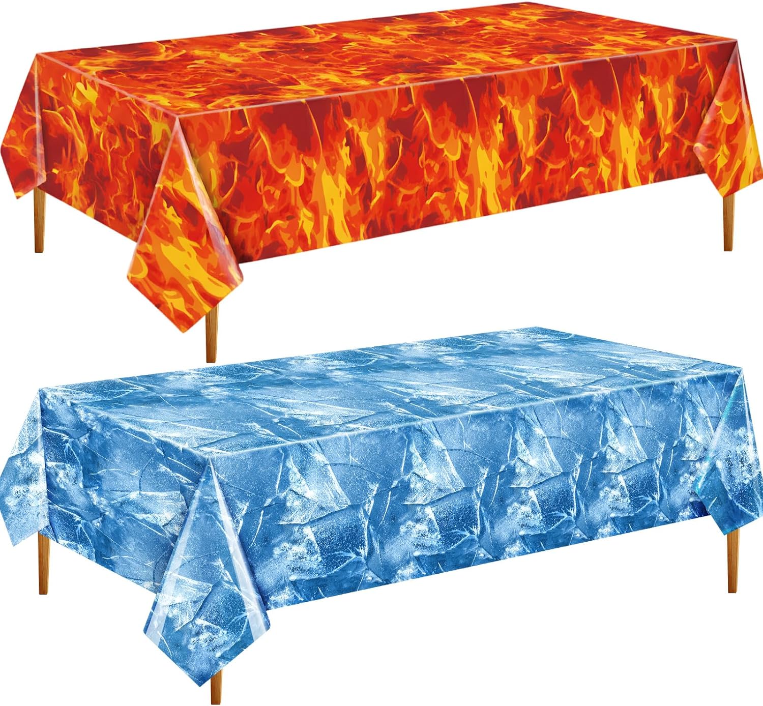 Features: Tablecloths for decorating Use this artificial iced decoration to give your Christmas tree, village creek river, winter ocean display, and holiday decorations a Christmas and winter feel and ambiance. The fire plastic table covers may be applied for a variety of events, including dance parties, birthday parties, theme parties, and celebrations. You can also use them as a background on the wall or door. Specifications: Material: plastic Color: blue, red Size: about 54 x108 inches Package includes: 6 x Plastic tablecloth Notes: Manual measurement, please allow slight errors on size. The color may exist a slight difference due to different screen displays