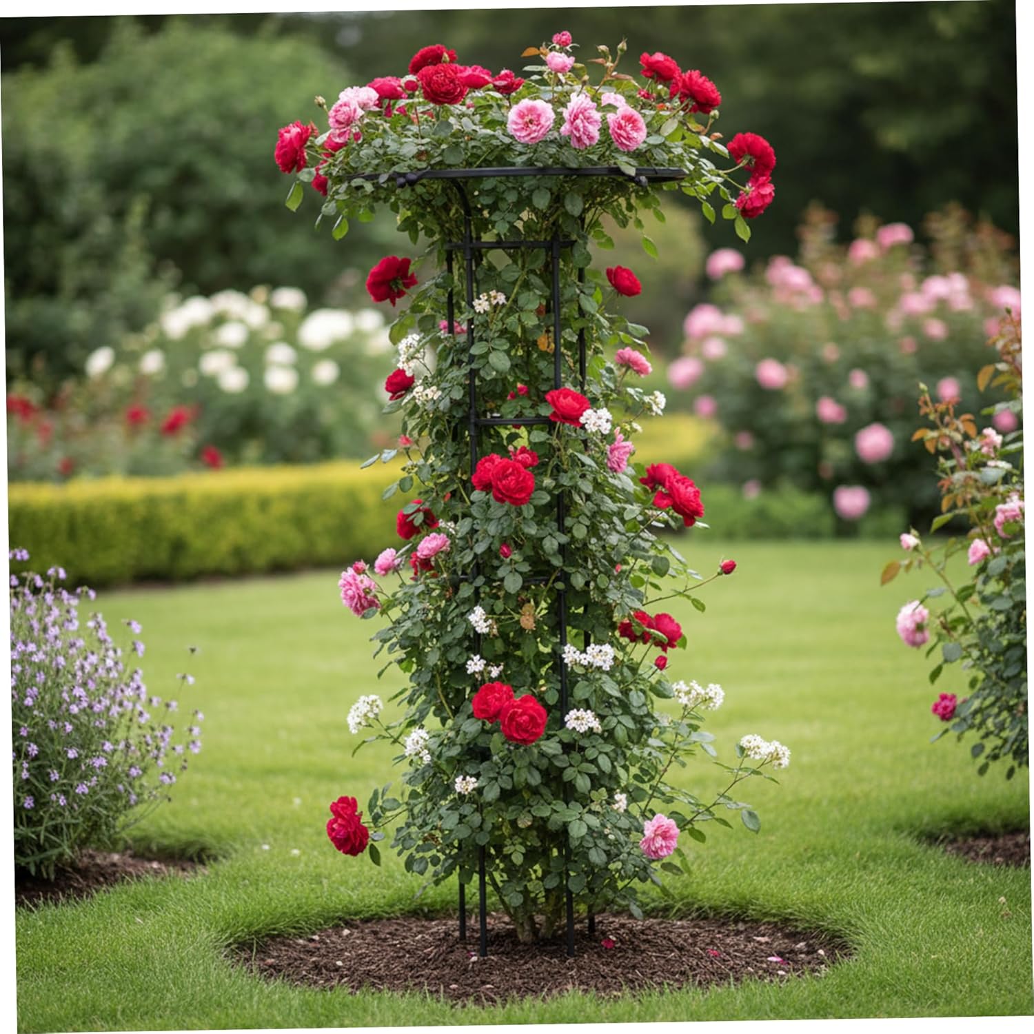 Description: Elevate your garden's beauty and functionality with our versatile Stackable Obelisk Trellis. Designed for the home gardener, this elegant structure provides the perfect framework for your climbing plants to grow. Crafted from robust steel with a plastic coating, this trellis is built to last through seasons. The coating protects the metal from rust and provides a gentle, insulated surface for your plants. Its classic black finish blends seamlessly into any garden style, from rustic to modern. The true innovation lies in its stackable design. Start with the base unit to support young plants. As your vines reach skyward, simply add the next tier to extend the trellis upward. This adaptable feature means one purchase supports your plants from seedling to bloom, making a cost-effective and scalable gardening solution. Ideal for creating focal points in flower beds or providing necessary support for vegetables in raised garden beds and containers. Its pointed legs ensure a firm hold in the ground. Transform your patio pots or garden corner into a stunning vertical display with this practical and attractive plant support tower. Features:. -Color: Black. -Material: Plastic-coated iron pipe + plastic ring. -Size: 150 cm/59.06 inch. Note:Manual measurement, please allow slight errors on size.The colors may exist slight difference due to different screens. Package Including 1 * Garden Trellis