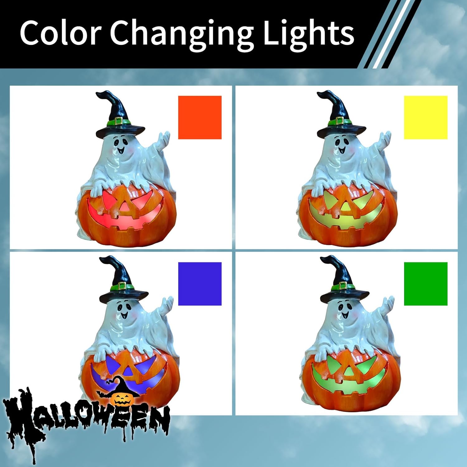 Solar Halloween Pumpkin Decoration with Ghost Solar Garden Lights Color Changing LED Lights Jack O Lantern Halloween Yard Lawn Party Outdoor Decorations