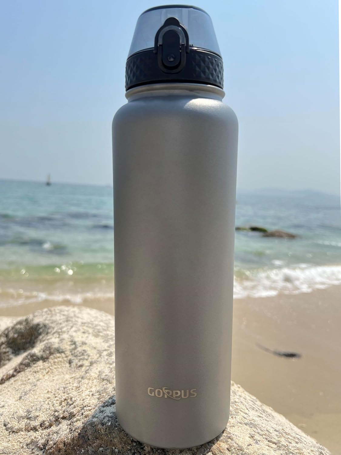 GOPPUS 1.2L/40oz Stainless Water Bottle with Straw Large Thermal Bottle 1200ml Flip Top Metal Bottles Cold Drink Leakproof Flask Big Drinks Bottles Double Walled Insulated Bottle Travel Water Bottle