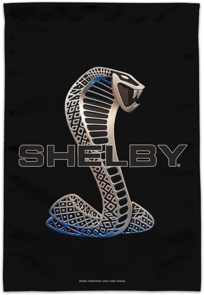 About The Product: In a world where everyone feels like they blend in, you can stand out from the crowd with this yard flag by Graphics and More! This flag is the perfect way to give your yard some personal flair, and to make it more distinguishable from your neighbor’s! The flag measures approximately 13" (33cm) x 19" (48cm), and it’s made of a silky fabric with a flawlessly-transferred design on both sides. And if you already own a flag pole, no worries! The flag can be purchased both individually, or as a set with the pole. So what are you waiting for? Purchase this quintessential item today! :)About The Design: Shelby Cobra, is a sports car manufactured by British company AC Cars, with a Ford V8 engine. It was produced intermittently in both the United Kingdom and later the United States since 1962. If you're a fan you'll love this official Shelby Cobra product!