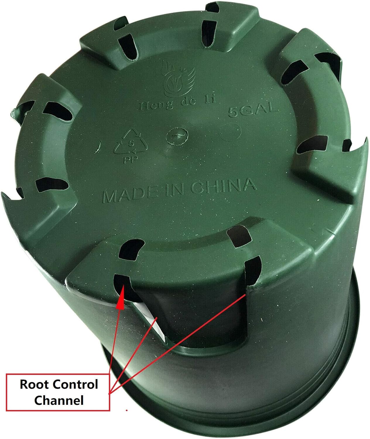This forest green plastic pots with Tray. The root control design is ideal for amateur and professional gardener. It is suitable for growing flower, vegetables, and nurture fruit trees indoor and outdoor. These planters are made from durable plastic and will sand a good deal of wear and tear. It can be used to decorate your windows, desktops shelfs and more. Root control channel design: The root system grows downwards, When it is too long, it will be exposed to air from the side seam of this planter. The roots exposed to the air cannot grow, which help keep roots under control. This process is conducive to plant growth.Made using high-quality plastic materials, the shape is smooth and sturdy. Heavy duty wraparound rim is easy to handle and to hold heavy plant.- Color: Forest Green- Material: Plastic - Size:-1/2 Gallon: Diameter 5.51" x Height 5.47" Weight 1.8oz-1 Gallon: Diameter 6.34" x Height 6.89" Weight 2.5oz-3 Gallon: Diameter 9.61" x Height 10.43" Weight 9oz-5 Gallon: Diameter 11.02" x Height 12.13" weight: 13.5oz - Shape: Round / High - Resistance: Water - Pots Product Type: Nursery Pots - Drainage Hole: Excellent Drainage Design to drain the stagnant water and prevent over watering for the aloe Vera plants, snake plants, flowers. - Environmental conditions: indoor/outdoor