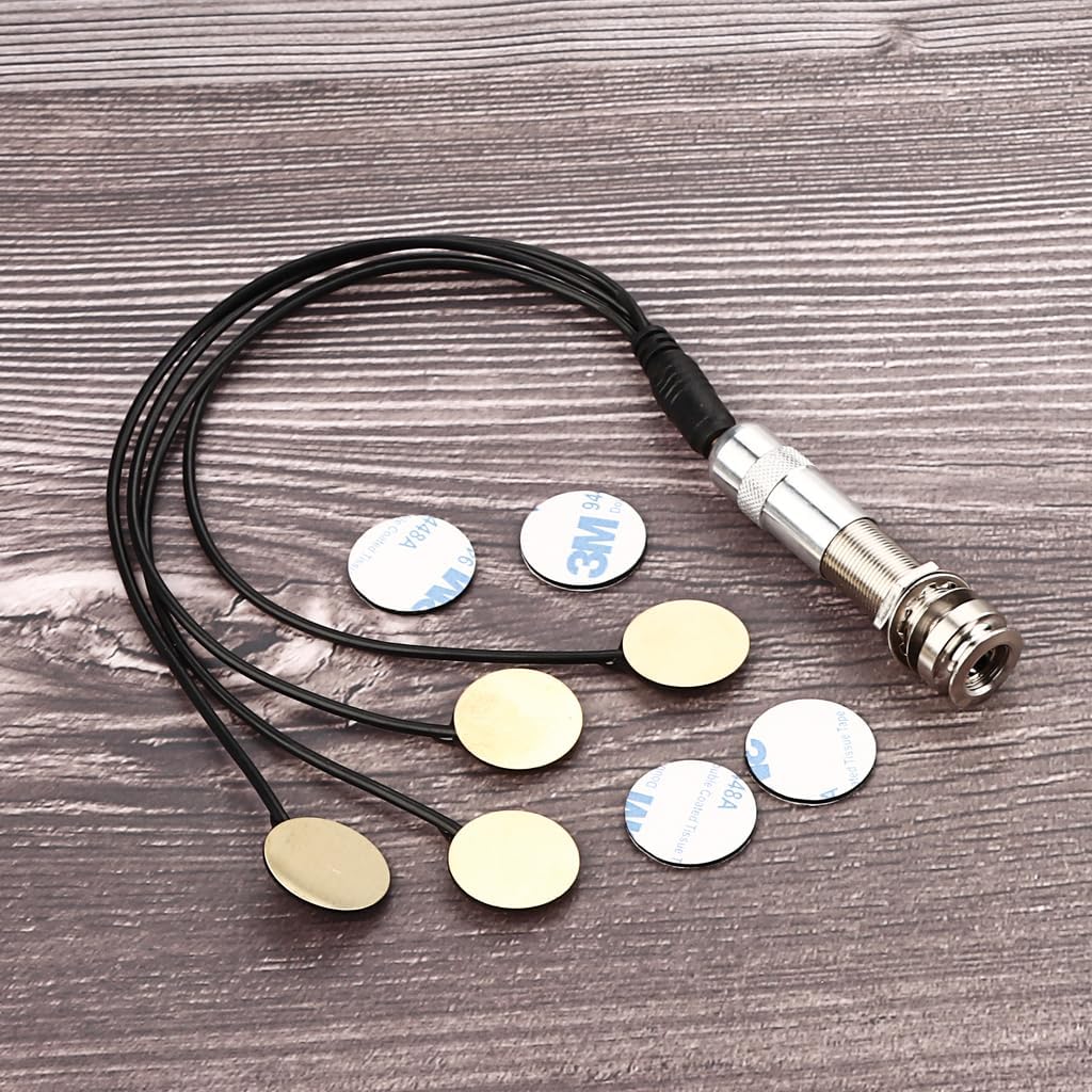 Pre-wired piezo mic save time for you, easy to install, convenient to use You can attach the piezo in or on your build, drill a hole and mount the jack Drill a hole from inside the body, loosen the end-pin jack nut,insert it to the hole and tighten the nut Very easy to install and sounded good through several different amps, No Soldering Required, No Battery Required With the advantage of being able to eliminate interfering external sounds and not be influenced by sound reflections from nearby objects