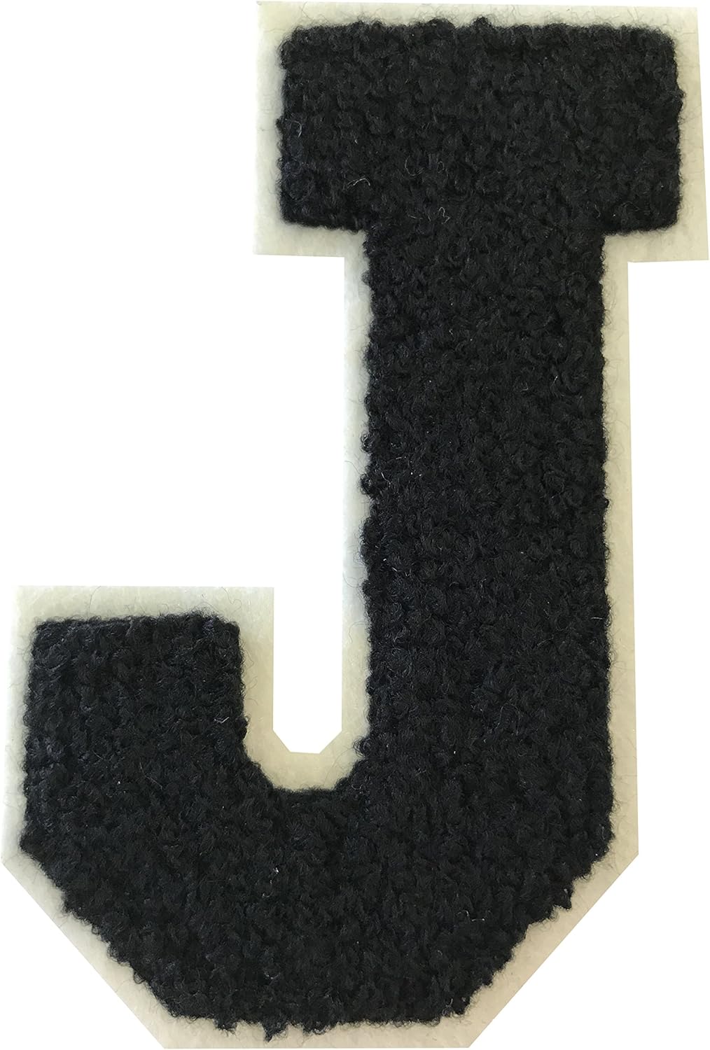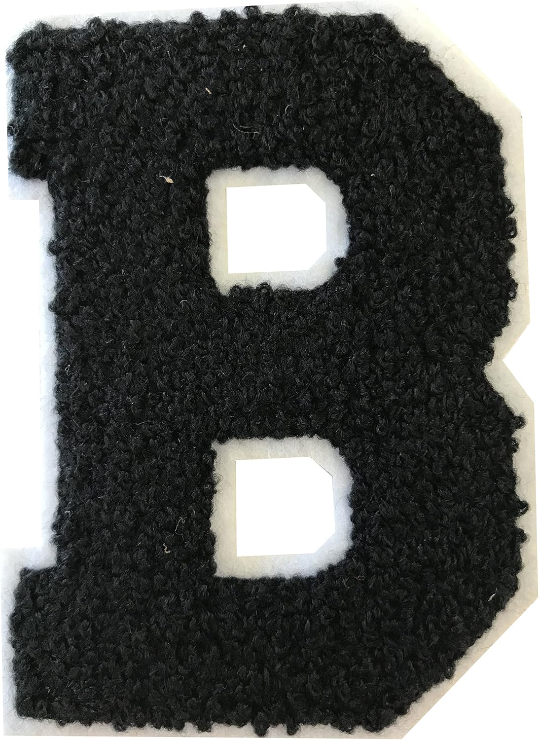 H - BLACK ON WHITE CHENILLE 8" VARSITIY ALPHABET PATCHES READY TO IRON-ON