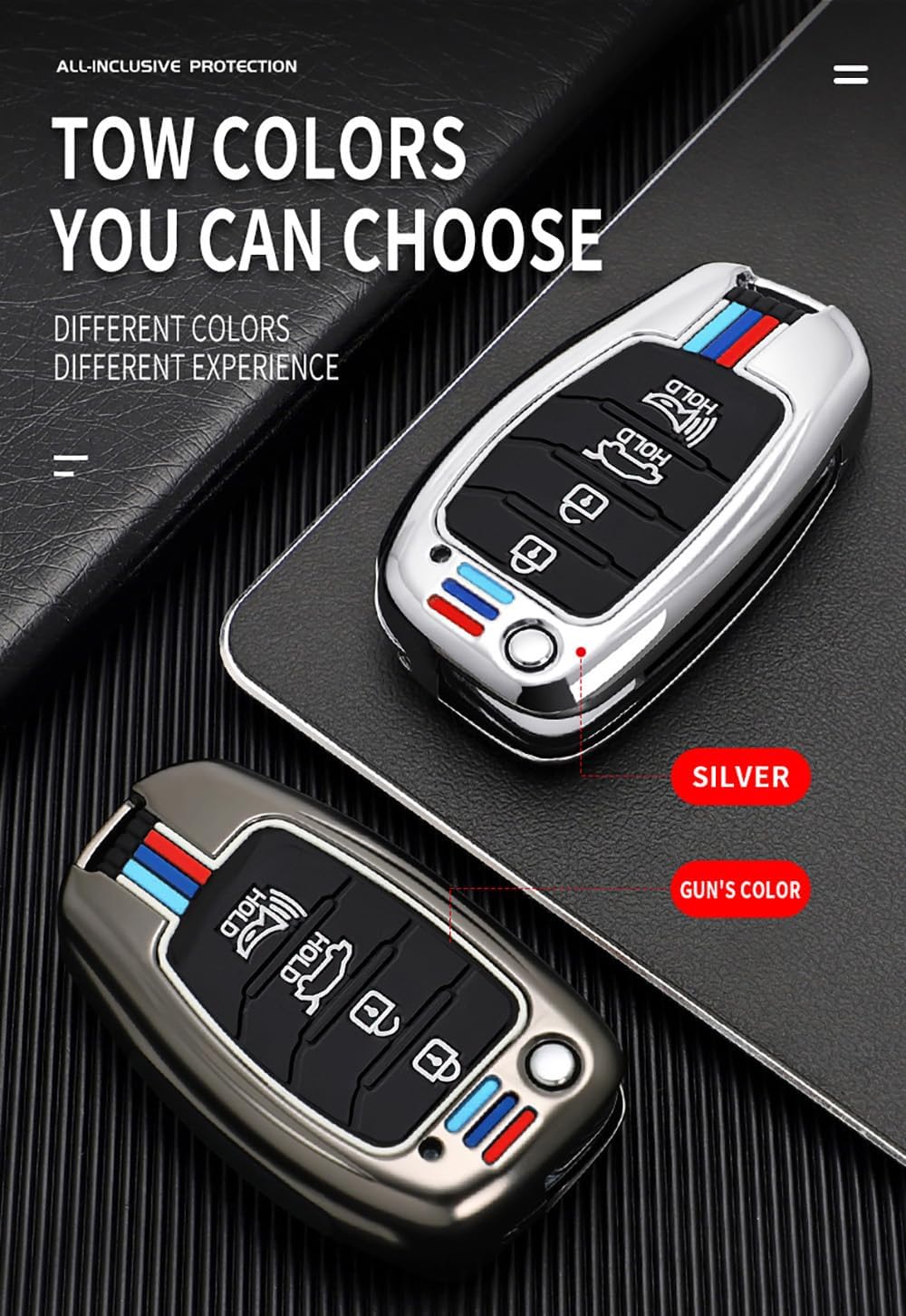 COMPATIBILITY: Compatible with Hyundai Tucson Sonata Fe Creta Mistra Elantra Ioniq Venue IX35 I10 I20 I30 I40 Solaris Kona Santa Fe floding 3/4 button smart key {The shape and size of the car key may differ due to the year and grade.Please ensure your original car key look the same as photo 2 before ordering.(See the car key refer photo).}" MATERIAL&DESIGN: The smart remote key fob cover case made of Zinc Alloy+TPU Double Protector High-quality zinc alloy, so that the key shell remains strong and lighter at the same time The soft TPU fits the key button, has good elasticity, is comfortable to use, does not peel off the paint and is resistant to dirt Design: This key holder cover Made according to original car key 1:1, completely fit the key holder for Hyundai Tucson without leaving any gaps Each key case comes with a key chain for easy carrying and storage