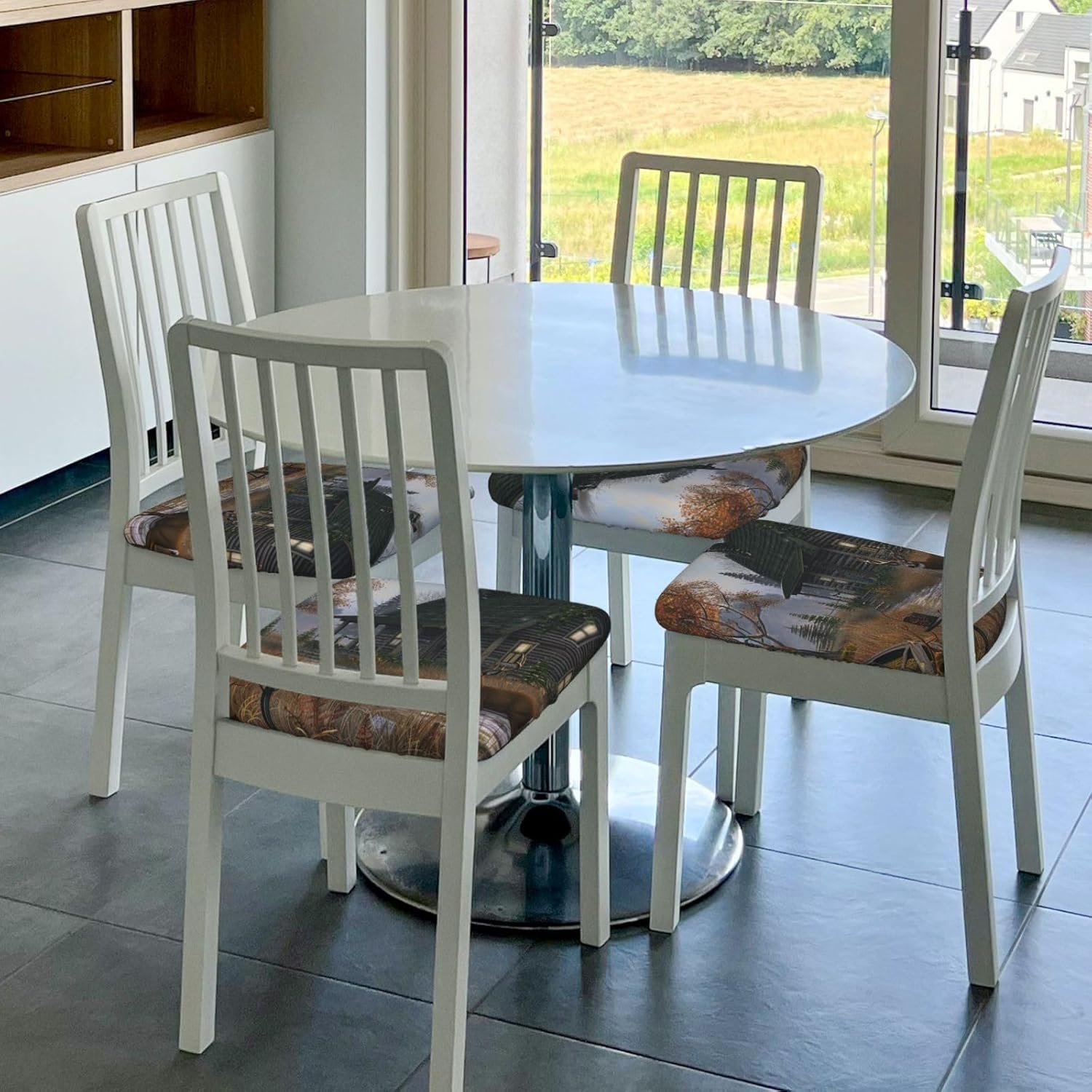 Our 6 Pcs set of square chair cushion covers are a wonderful addition to any seating area. Made of milk silk (94% polyester and 6% spandex), they offer a great combination of elasticity and comfort. With the unique design of elastic bands and 4 tie - straps (approx. 40cm each), these covers can be quickly installed on square chairs with sizes ranging from length and width of 35 - 48cm and thickness of 2.5 - 6cm. They are perfect for protecting your chairs from kids' doodles and pets' damage while enhancing the overall look of old chairs. These cushion covers can be used in various places such as offices, homes, cars, and wheelchairs, as well as for events like hotel functions, weddings, dinners, conferences, and family celebrations. What's more, they are easy to clean either by hand or gentle machine wash, ensuring they stay fresh all year round. They are also an ideal gift for your loved and colleagues.