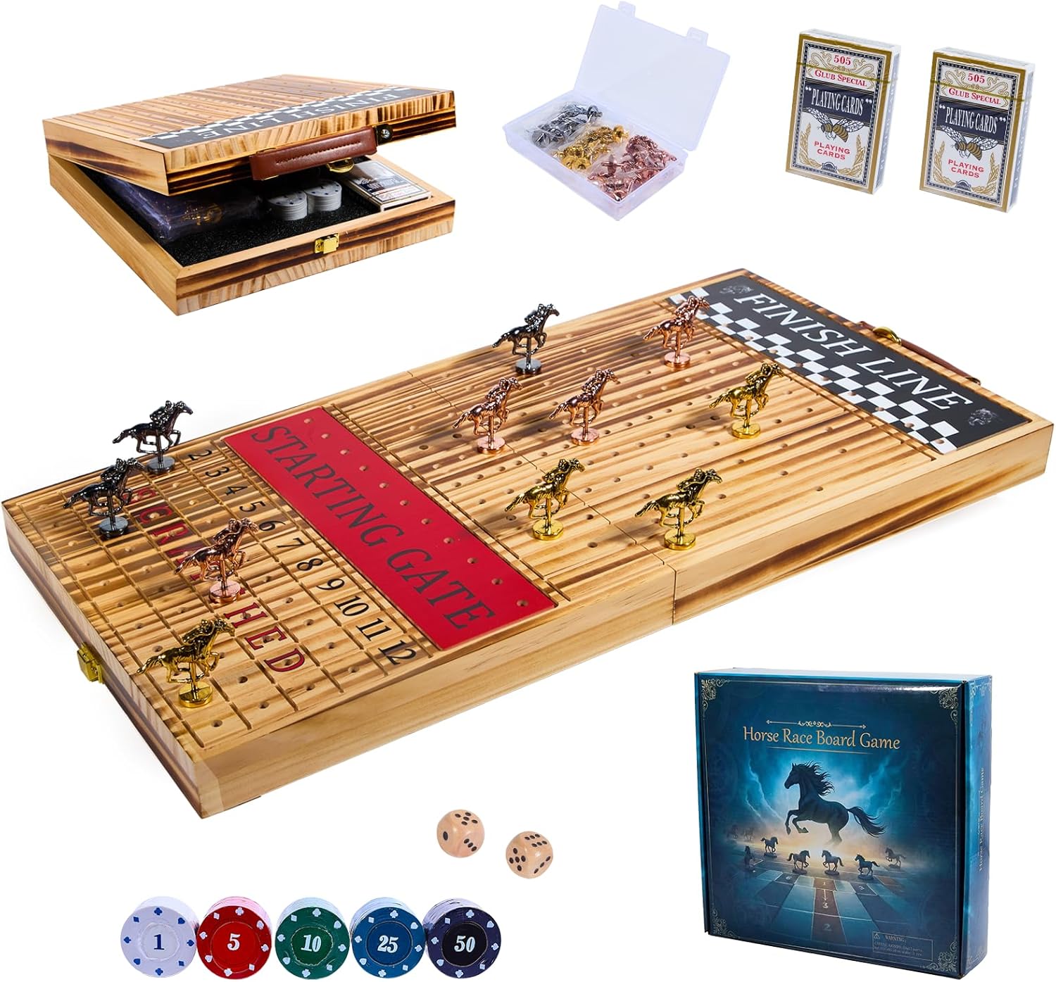 | Included Components | 1 Folding Box Game Board, 100 Chips, 11 Metal Horse+Acrylic Storage Box, 2 Dice+2 Cards, Game Instructions |