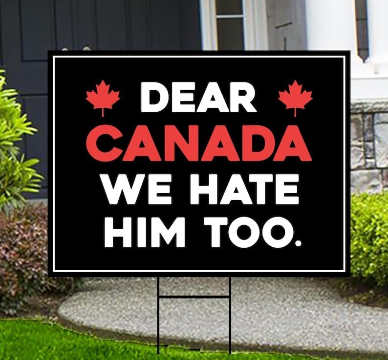 | Pre Printed Text | I Love Canada Yard Sign, Dear Canada We Hate Him Too, Anti-Trump Canada, Elbows Up Canada Never 51st State |