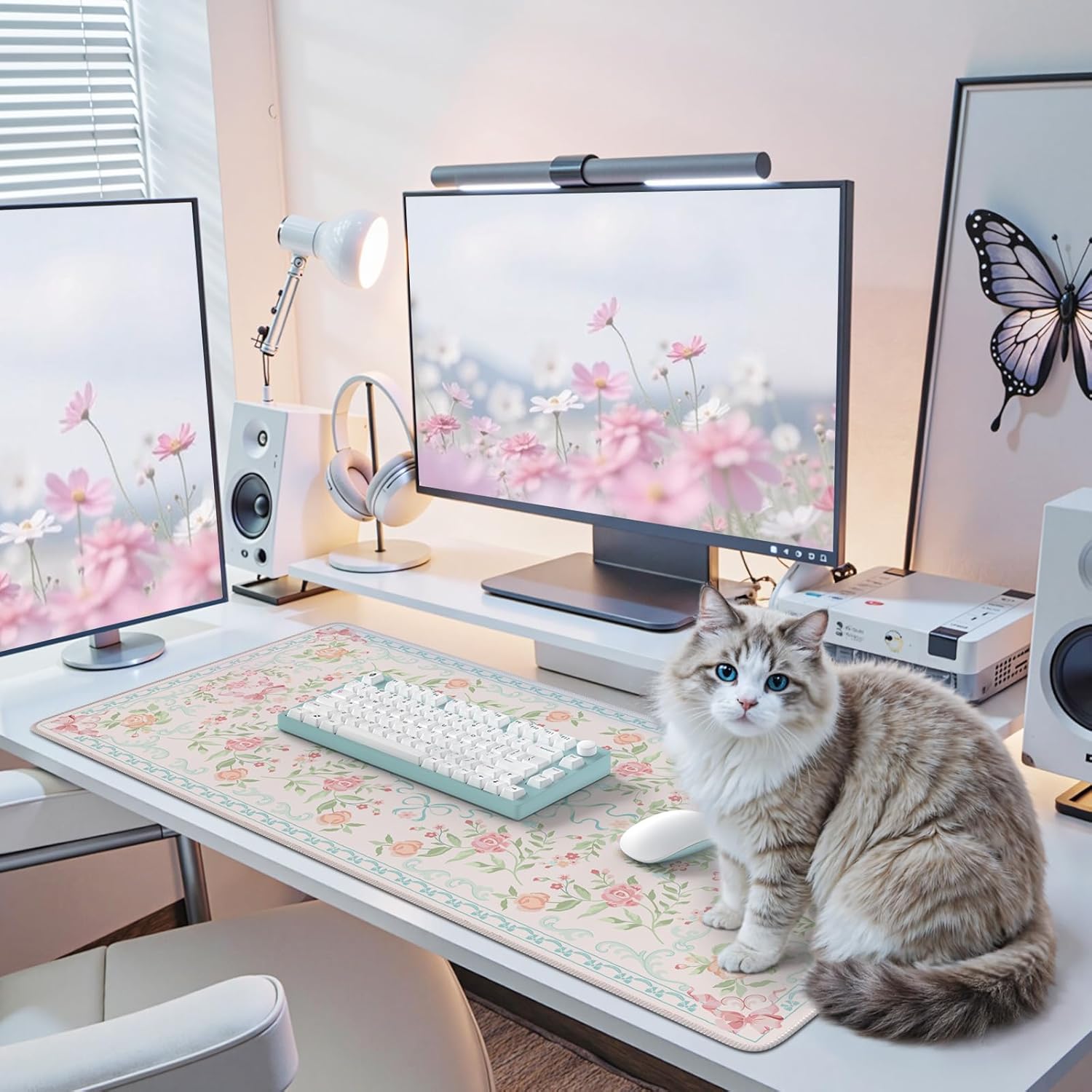 Wrinkle Resistant:This desk mats on top of desks is thin so it's easy to store, you just need to fold or roll it up!The rubberized base of the keyboard and mouse pad is flexible, so you don't have to worry about it folding or bending and getting wrinkledMulti-functional:With a comfortable, smooth surface, this anime girl mouse pad can be used as a writing mat to provide support underneath your paper as you write and draw. And the non-slip backing ensures that you won't slide around on the table while you write.The kawaii desk mat can also be used as a placemat, which prevents damage to the surface of the table, during meals and is easier to cleanPerfect table decoration:This computer mat for desk has a unique appearance and design, the simple floral plant pattern is a perfect choice for you to decorate your desktop. You can use this teacher desk matt to decorate your dressing table, desk, office desk, gaming table and so onMeaningful present:This is great as a birthday or holiday present for loved ones and friends. No one will fail to love this good looking and practical laptop mat