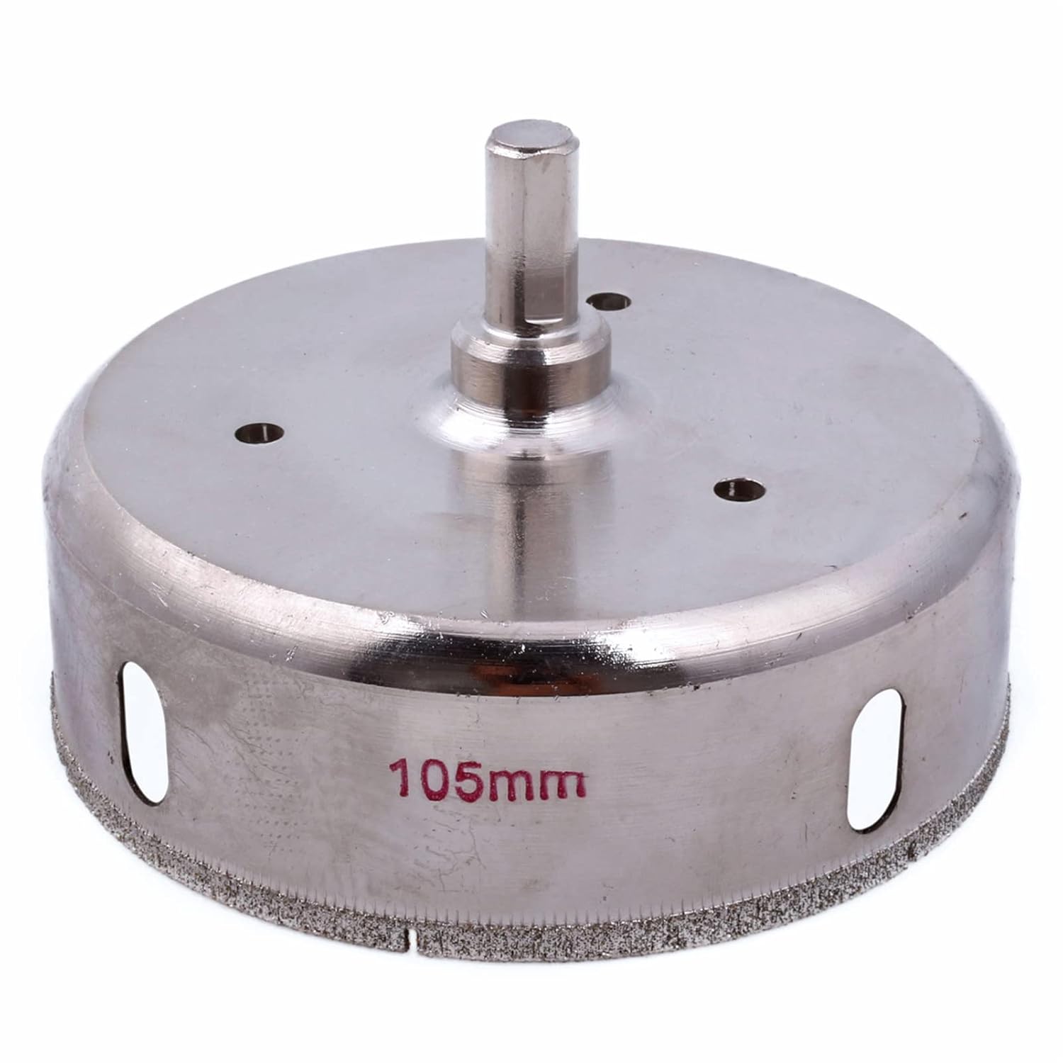120mm Diamond Coated Tool Drill Bit Hole Saw for Glass Tile Ceramic Marble Granite. Hole Diameter:120mm. Internal Diameter:115mm. Shank Diameter:10-11mm. Rim Thickness:1.8mm-2.0mm Total Length:60mm Drilling speed:29mm Quantiy:Only 1 Piece (Please select the product specifications you need) Brand New & High Quality Easy to use, Good Performance and long life. Excellent for making clean and accurate hole on glass, tile, granite and marble Works better with a electric drill( Excluding in this item) Drilling speed: Drill a Holes In Seconds Use with water as a lubricant Quick Tips 1. Please add water for coolant and drill slowly 2. start drill at 45 Degree to surface and align to 90 Degree as hole forms 3. Never use drills while machine is in hammer action. 4. Holes Require No Futher Work As Cutting Is Clean