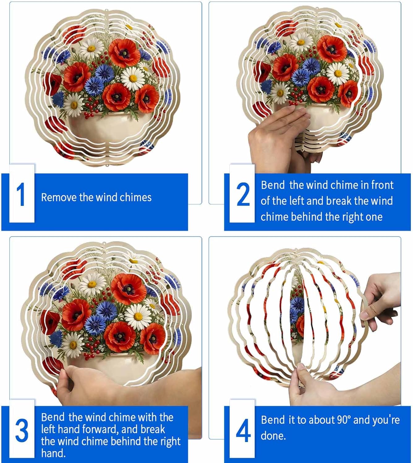 If you are looking for a way to beautify your yard with decorationsThis beautiful metal wind spinners is perfect for decorating garden, courtyard, bedroom, home, living room, and porche.Why Choose our Ggarden Spinners OutdoorMagical 3D VisualsThis windmill can rotate freely 360 ° even in a gentle breeze, creating a magical 3D effect. Add dynamic charm to your yard or garden.Versatile Indoor & Outdoor DecorationOur wind spinners perfect for garden, courtyard, balcony, porches, bedroom. Elevates outdoor spaces with elegant charm and infuses interiors with artistic.No Complex Assemblyits unique design lets you shape and unlock stunning 3D effects in just a few quick, hassle-free moves. Start enjoying its beauty right out of the box.Simple Suspension and Easy MaintenanceOur wind spinners outdoor clearance equipped with sturdy hooks, it can be easily hung on trees, walls, or outdoor hooks. Maintaining its luster is easy: clean with a dry cloth or rinse with water.Present CreativityThis garden spinners outdoor is the perfect gift choice for Thanksgiving, Christmas, birthday, wedding, Father's Day, Mother's Day, housewarming celebration, Valentine's Day, anniversaries, and more.Size SelectionWe offer two specifications: 8-inch wind spinners and 10 inch wind spinners. You can freely choose according to your own needs. Our heat sublimation wind turbine blanks are made of stainless steel to ensure durability.