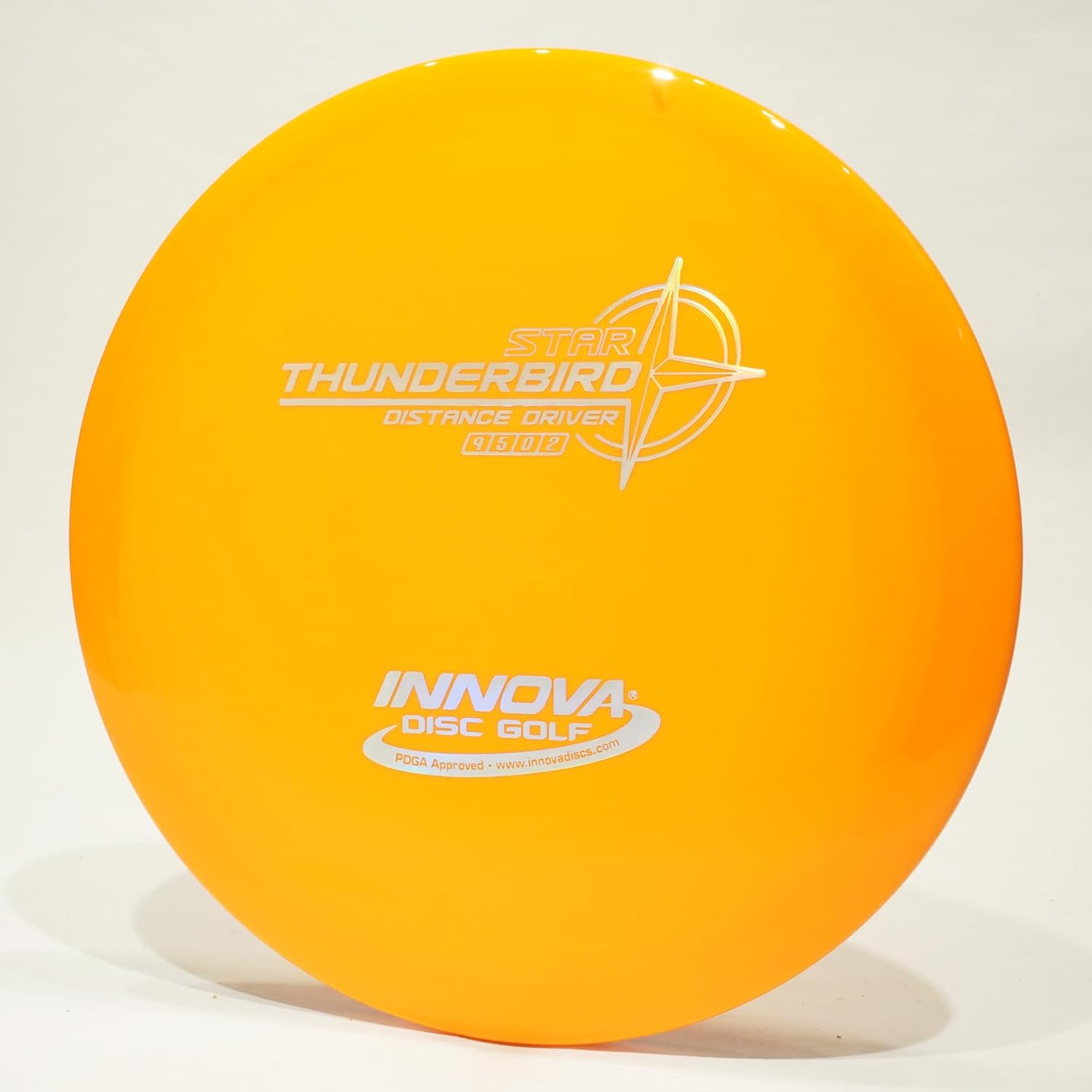 The Star Thunderbird is a placement distance driver from Innova. It is a lot like a Teebird in its flight path, but beefed up for added speed and distance! With speed that matches a Valkyrie but more wind resistance, this disc flies a lot like a well-seasoned Firebird. Very useful for shorter drives where control and accuracy are a must.Features & detailsFlight characteristics: 9 / 5 / 0 / 2 (speed / glide / turn / fade)Best choice for: accurate short drives, utility driver, flex shotsPlease note: stamp & exact color may vary