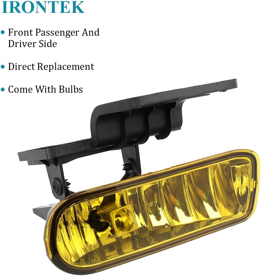 The importance of IRONTEK Fog Lights: Fog lights are one of the most important precautionary upgrades you can make. Enabling you to see the road ahead with an unrivaled amount of clarity, providing spectacular illumination that is also enduringly stylish. OEM Part Number: 10368476 10368477 Part Fitment Information: 1999-2000 for Chevy Silverado All Models (1500/2500) 2001 for Chevy Silverado 15002001 for Chevy Silverado 25002001 for Chevy Silverado 3500 2002 for Chevy Silverado 15002002 for Chevy Silverado 2500 2000-2006 for Chevy Suburban 2000-2006 for Chevy Tahoe (Does not fit Z71)