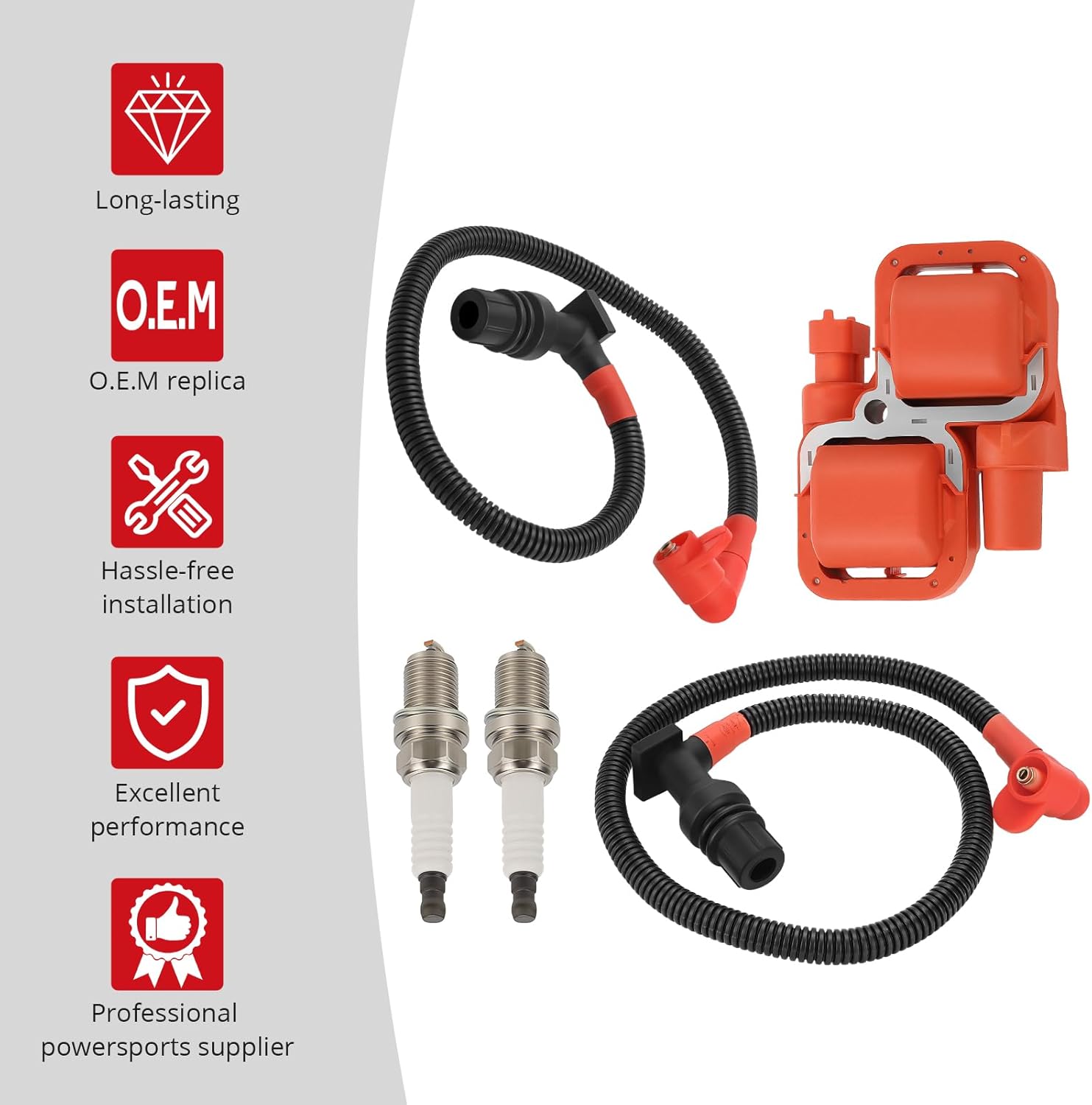 JAVIK Ignition Coil Spark Plug With 52cm 29.3cm Wire Cap For Polaris Ranger 800 XP Crew 2011-2016 RZR 800 4/S 2011-2014 O.E.M# 4010425 3021671 4012889 4013078