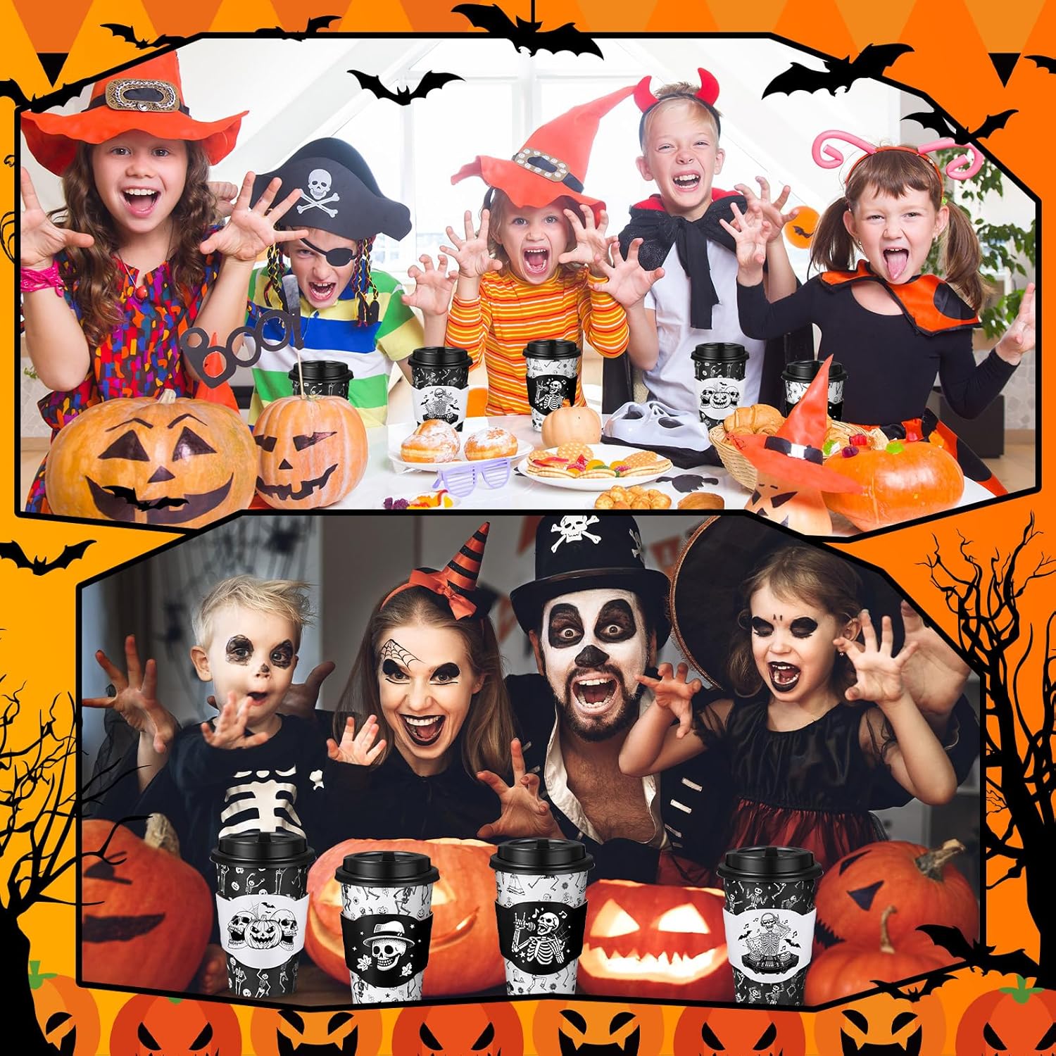 | Included Components | 100 x Halloween coffee cups lids, 100 x Halloween coffee cups sleeves, 100 x Halloween disposable coffee cups |