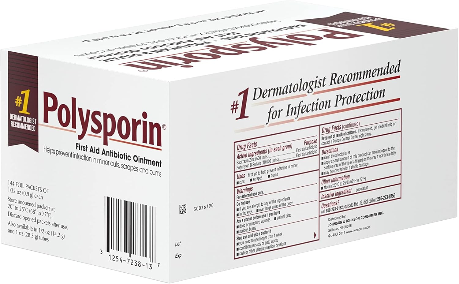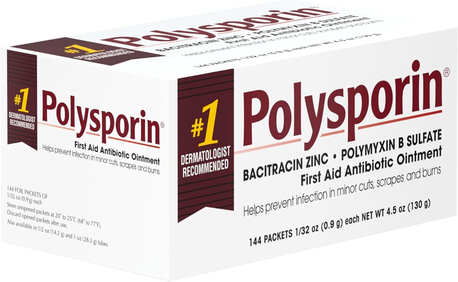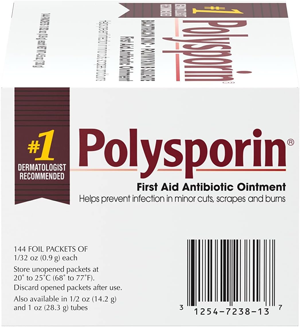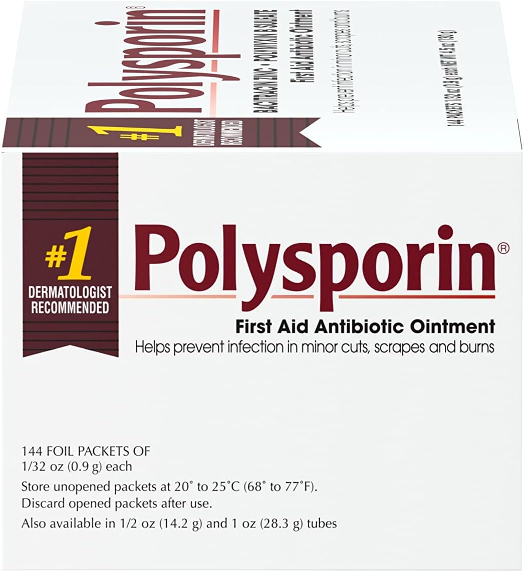 Helps prevent infection in minor cuts, scrapes and burns with Polysporin First Aid Antibiotic Ointment. This topical ointment combines the power of bacitracin zinc with polymyxin B sulfate for first aid antibiotic power without neomycin. Polysporin First Aid Antibiotic Ointment is the dermatologist-recommended first aid ointment to help prevent infection. Simply apply a small amount of wound care ointment on the affected area one to three times a day and enjoy protection.