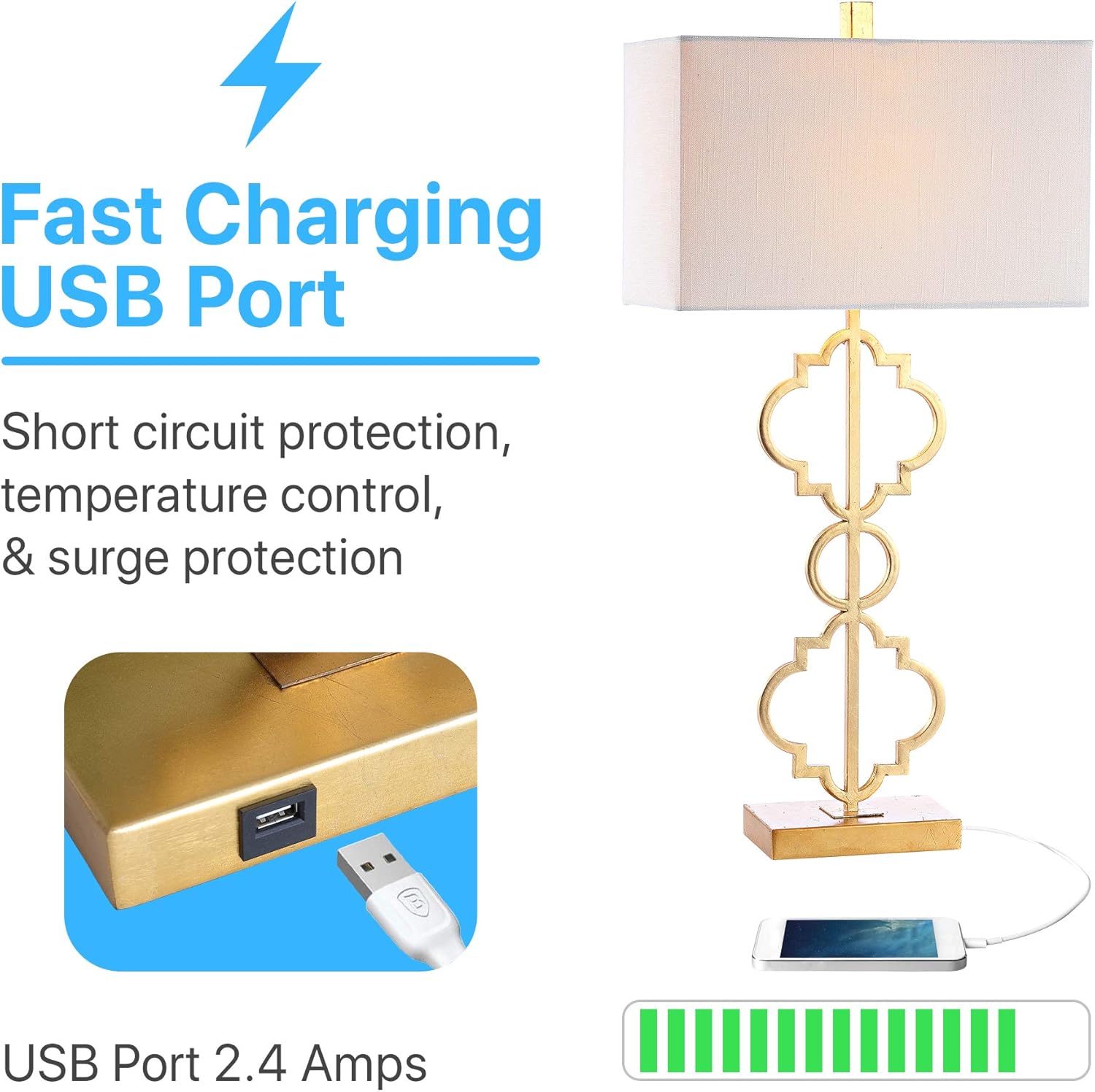 | Item Type Name | Selina 32" Iron Ogee Trellis Modern LED USB Table Lamp Contemporary Bedside Desk Nightstand Lamp for Bedroom Living Room Office College Bookcase |