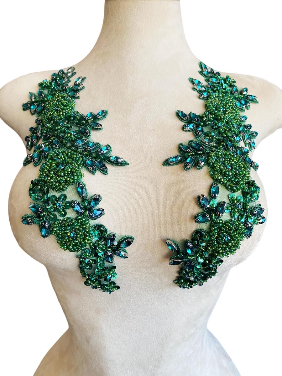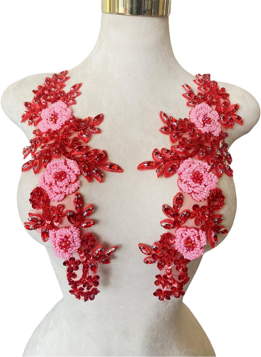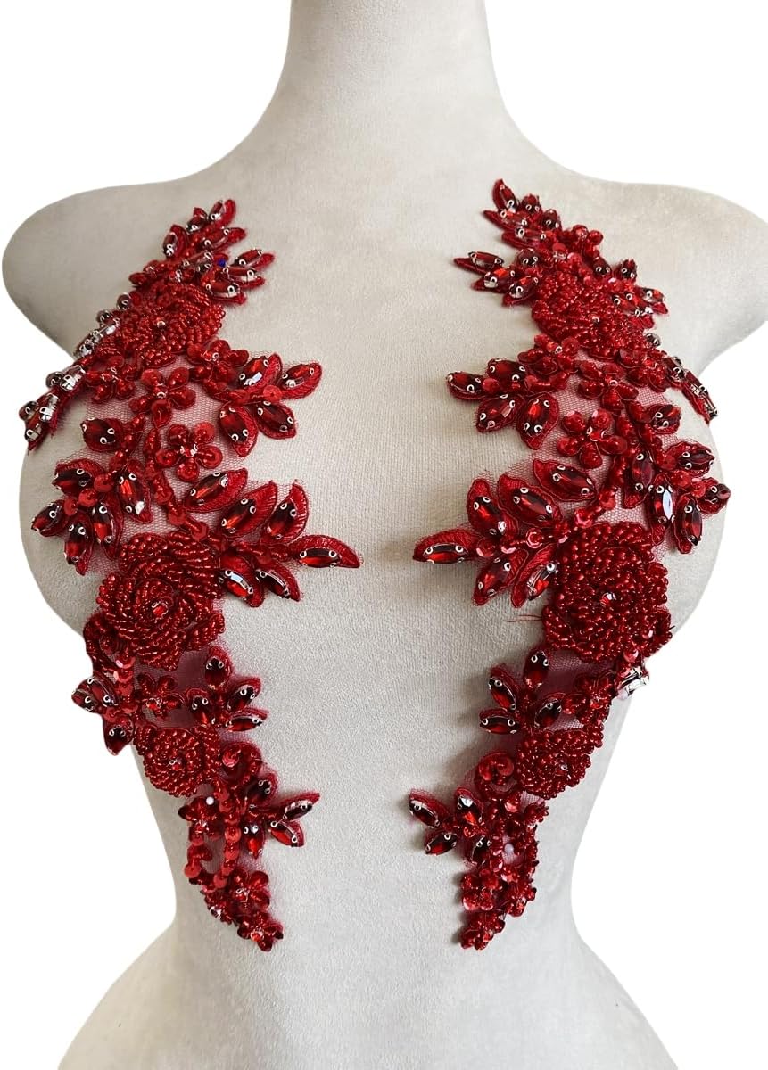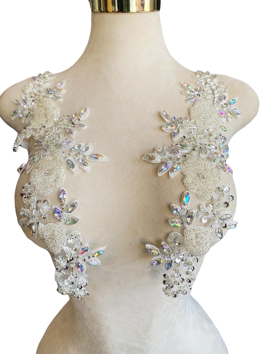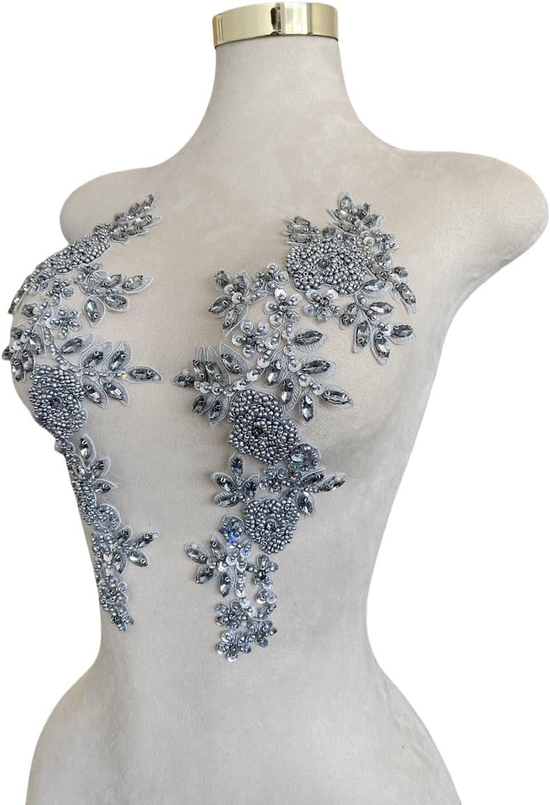Introducing Jpumley. pksn's Handmade Beaded Appliqué! Made with premium rhinestones, this exquisite lace trim is perfect for sewing and adding a touch of luxury to wedding dresses and other accessories. Each order comes with one pair of appliques in a 5.9x7.08 inches bag. The intricate beadwork and sequin detailing make this applique truly stand out from the rest. Transform any garment or accessory with this stunning beaded patch. Whether you're a professional seamstress or a DIY enthusiast, this versatile trim is easy to work with and will elevate any project.
