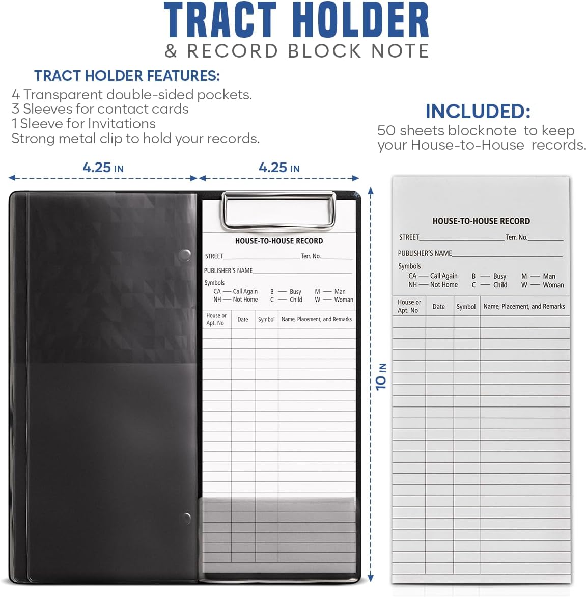 Enhance your ministry with this complete JW Field Service Bundle, combining our best-selling Tract Holder with our premium Sticky Notes—two essential tools designed specifically for Jehovah’s Witnesses. The Tract Holder keeps all your literature organized and ready to use, with dedicated pockets for JW tracts, invitations, and contact cards, plus 50 House-to-House sheets for tracking your visits. Its durable construction and sleek 4.25 x 10 inch size make it easy to carry while keeping everything accessible during field service. The included Sticky Notes add meaningful value to your ministry. Use them to leave kind messages, scriptures, or return-visit reminders when someone isn’t home. Each pad is made from smooth, high-quality paper and features a strong yet removable adhesive that sticks securely without damaging surfaces—perfect for doors, gates, notebooks, and ministry folders. This bundle is not only practical but also a thoughtful gift for pioneers, publishers, and friends in the congregation. Whether used daily in the ministry, during return visits, or for Bible studies, it helps keep your service organized, efficient, and uplifting. Equip yourself—or someone you appreciate—with tools that support effective ministry work, encourage consistency, and help you make every visit count. A complete, ready-to-use set for living the Best Life Ever.