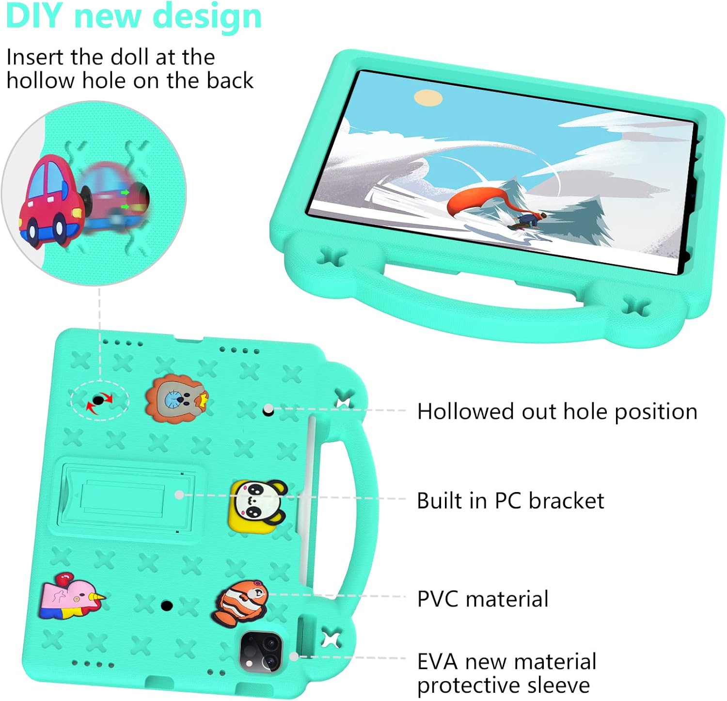 Compatible Models: Compatible with Apple iPad (A16) 11th Generation 11 Inch (2025 release) (Model Number: A3354 A3355 A3356); Compatible with Apple iPad 10th Generation 10.9 Inch (2022 release), (Model Number: A2696 A2757 A2777); not fit other tablets. Product Features: 1. Kids-Proof: Made of flexible durable EVA foam and hard PC material, which can withstand considerable wear and tear and provide extreme shock protection. 2. Portable Pencil Holder: Built-in stylus pen holder Slot for your Pencil, which will fasten the stylus pencil tightly and not easy to drop out. 3. Adjustable Kickstand: Folding Hard PC bracket offers multiple viewing angles, ideal for virtual classes, video streaming, or interactive apps. 4. Built-In Anti-Slip Carrying Handle for Easy Grip: Designed for little hands, anti-slip and kid-friendly handle for secure carrying, preventing accidental drops during play or travel. 5. Raised Camera & Screen Protection: Air cushion technology for drop protection, raised bezels prevent screen and camera against drops & scratches. 6. Precise Cut-outs: All cutouts holes for the tablet's camera, speakers, other ports etc. Slim and lightweight, folio flip case, easy to install, remove and clean. 7. Stylisth and Cute DIY Cartoon Design: This adorable cartoon-style case adds fun to your child’s device, to stimulate their imagination and creative expression, just like playing puzzles or doing handicrafts. Package Includes: 1. 1 x Case for iPad (A16) 11th Generation 11 inch (2025) & FOR iPad 10th Generation 2022 (10.9 Inch) protective case 2. Bonus: 1 x Stylus Pen 3. Bonus: 1 x Cleaning Cloth