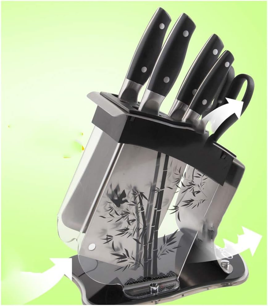 Package Included 1 x Knife Block Details of the product: Name: Tool holder Material: Stainless steel Acrylic ABS Size: 23*15.5*23.5cm Color: transparent color, printed Weight: 835g This package contains only this product and does not contain any decorative elements related to the image.\ As different computers display colors differently, the color of the actual item may vary slightly from the above images.