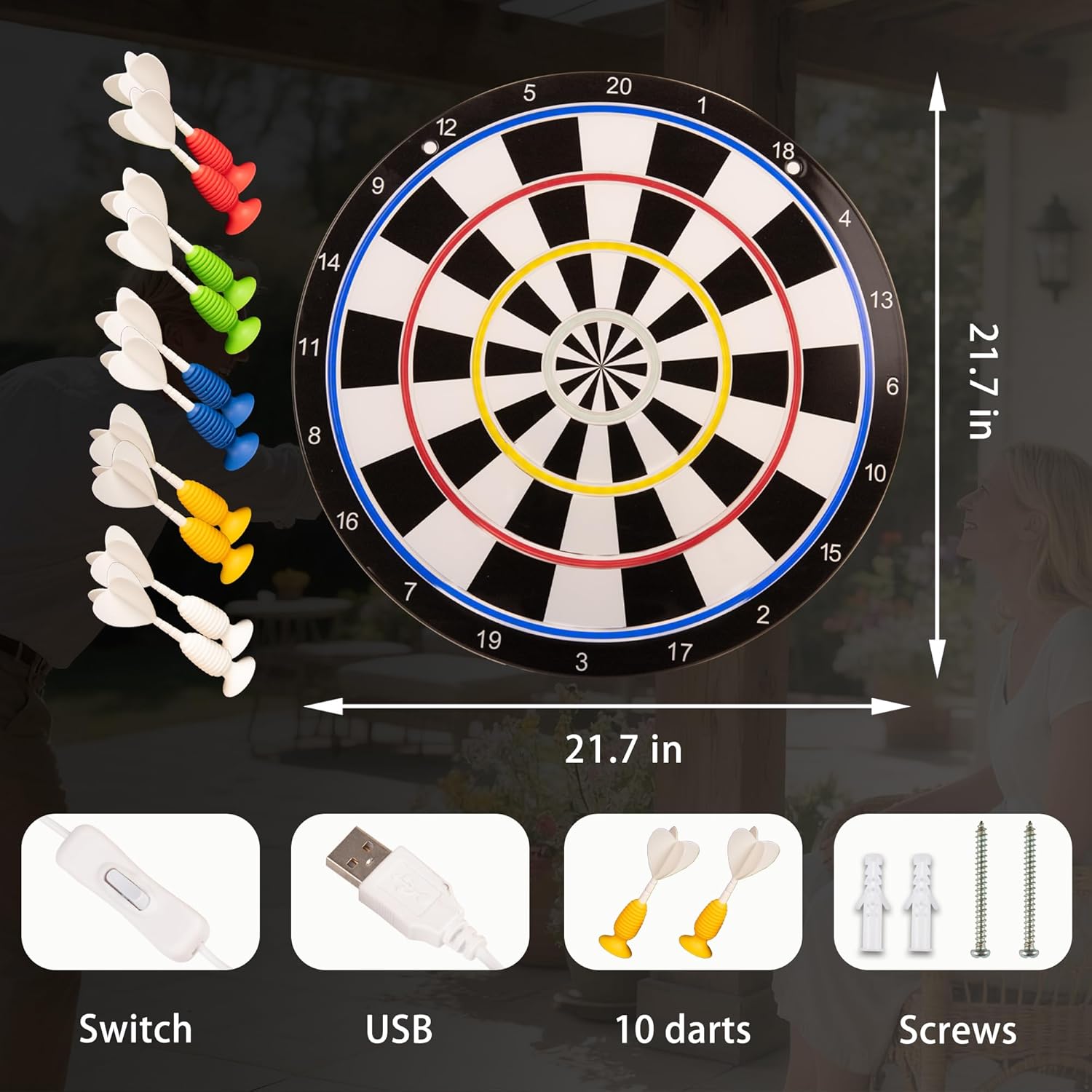 BITILLUM LED Light Up Dartboard with Safe Suction Cup Darts – LED Dartboard with Backlight for Kids, Teens & Adults, USB Powered Game Room Wall Decor for Family Fun, Bar & Parties