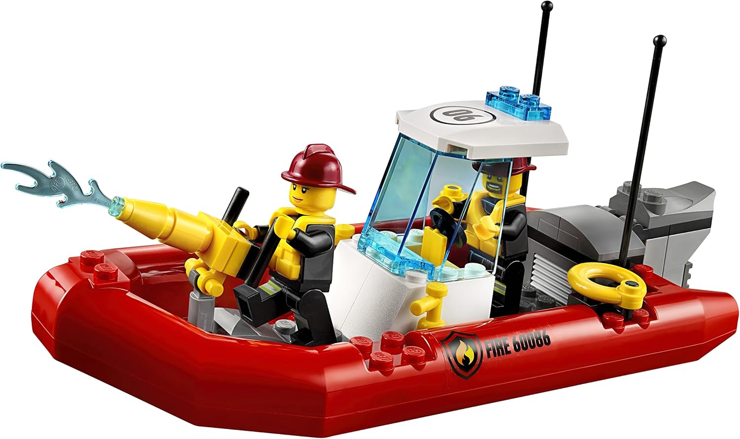 | Additional Features | Helicopter, police car with trailer and watercraft, speedboat, fireboat, unique accessories (walkie-talkies, handcuffs, fire extinguisher, crowbar, flames) |