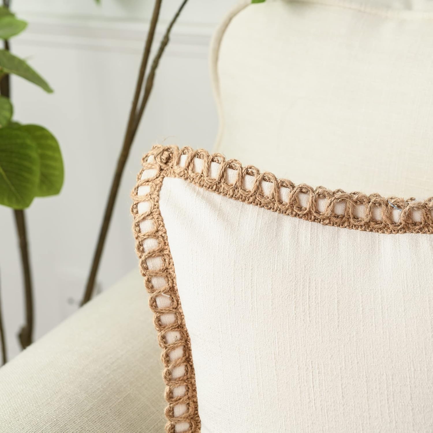 OUR STORY Ligicky is a leading brand in the home decor industry. We have been looking for a new expression of art and life, in order to transfer their abstract beauty into concrete existence. It is our long-term pursuit to help customers have an artistic house. A warm home is our bay and solid base. LIGICKY Pack of 2 Farmhouse Decorative Throw Pillow Covers Burlap Linen Trimmed Tailored Edges Square Pillowcases for Couch Sofa Bed Living Room ✤Great Decoration: Designed to look "country" can be fun, decorate with things that have meaning. Pair farmhouse burlap pillows with some vintage chairs and couches, and you'll create instant character. ✤Durable: High quality fabric and superb craftsmanship allow these pillows to accompany you for a very long time. ✤Great Gift Idea: These will also make a PERFECT GIFT for your loved ones during Housewarming, Thanksgiving or Christmas. Specifications: Brand: LIGICKY Material: Cotton and Linen Blended Size: 12 x 20 inch (30 x 50 cm) Color: Off White Package Includes: 2 x Throw Pillow Covers