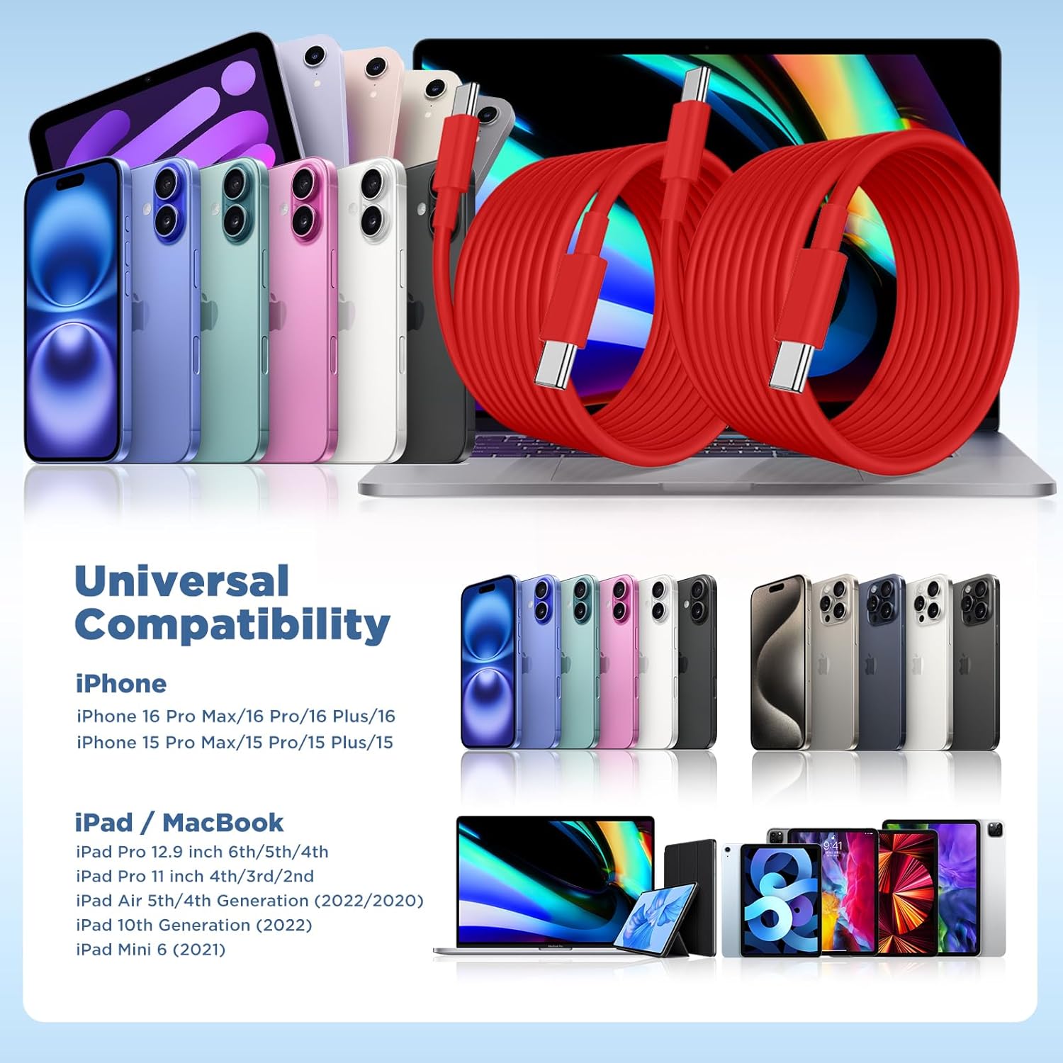 Long USB C to USB C Cable 15FT