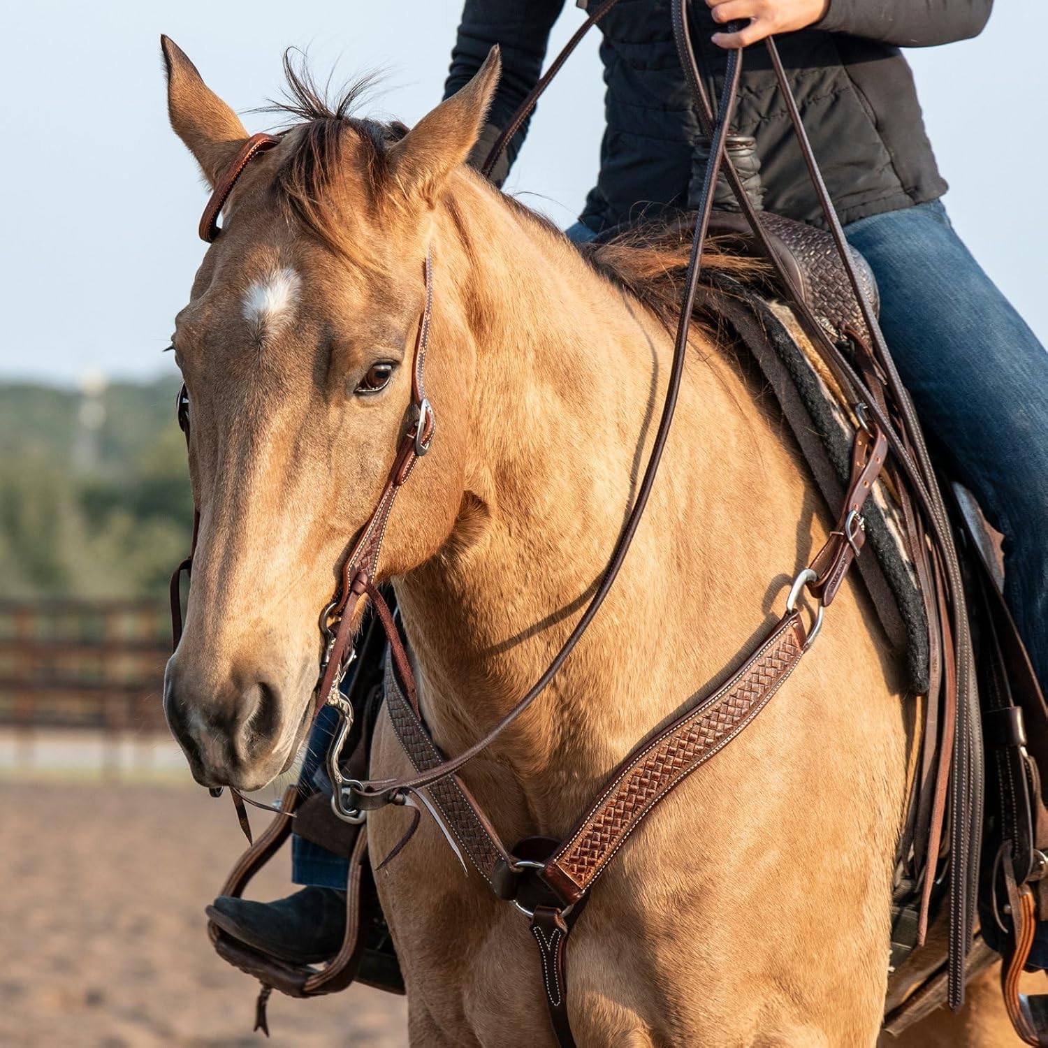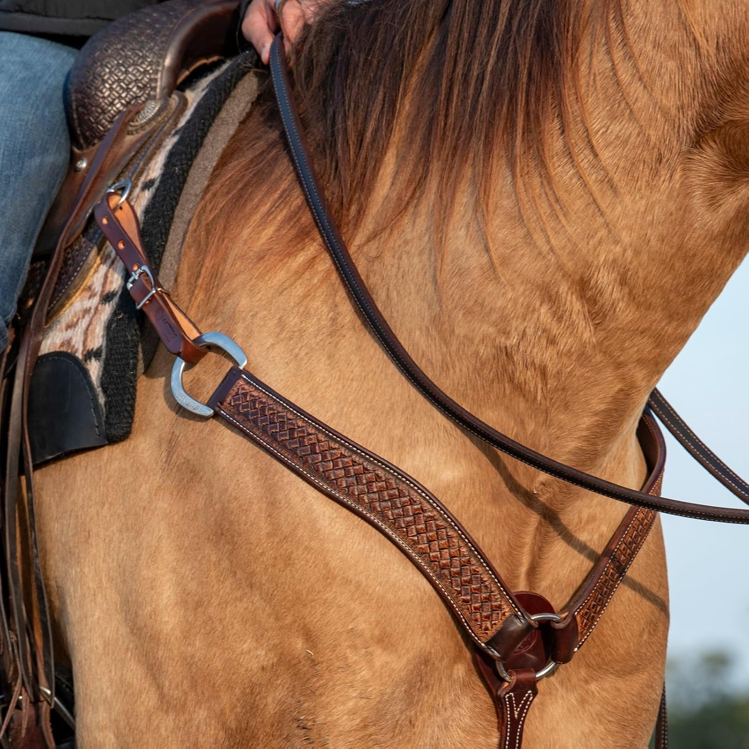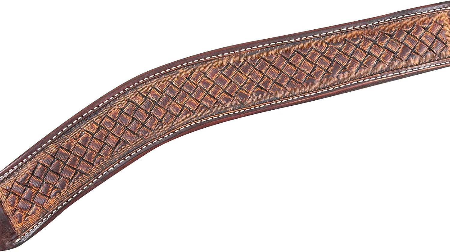 The Martin Saddlery 2-inch Weave Tooled Breastcollar is handmade from premium skirting leather with weathered antiquing and a weave stamp. Hand-oiled and hand-finished the traditional cowboy way, some variations in leather tone may occur.