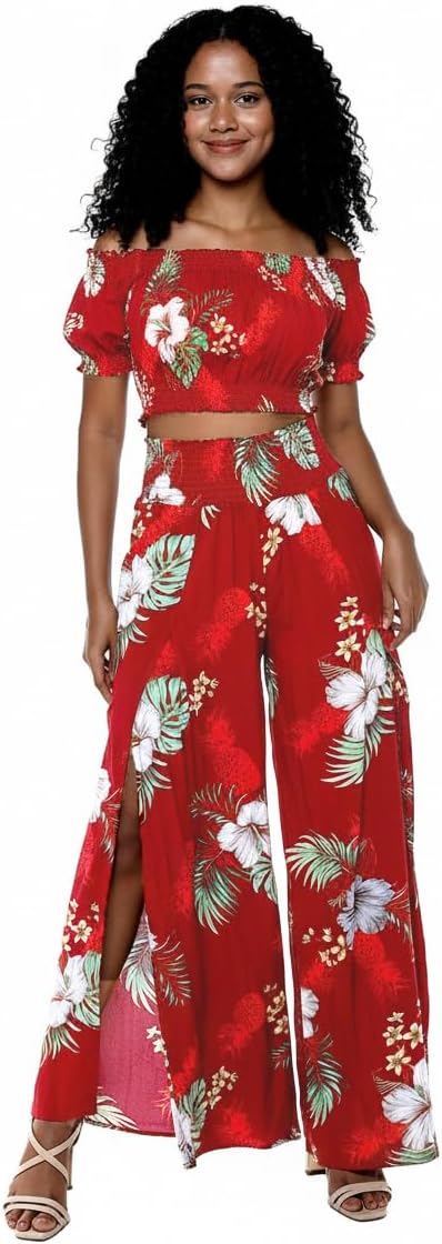 | Included Components | Men’s Hawaiian Shirt, Women’s Off-Shoulder Ruffle Crop Top, Women’s High-Slit Wide-Leg Pants |