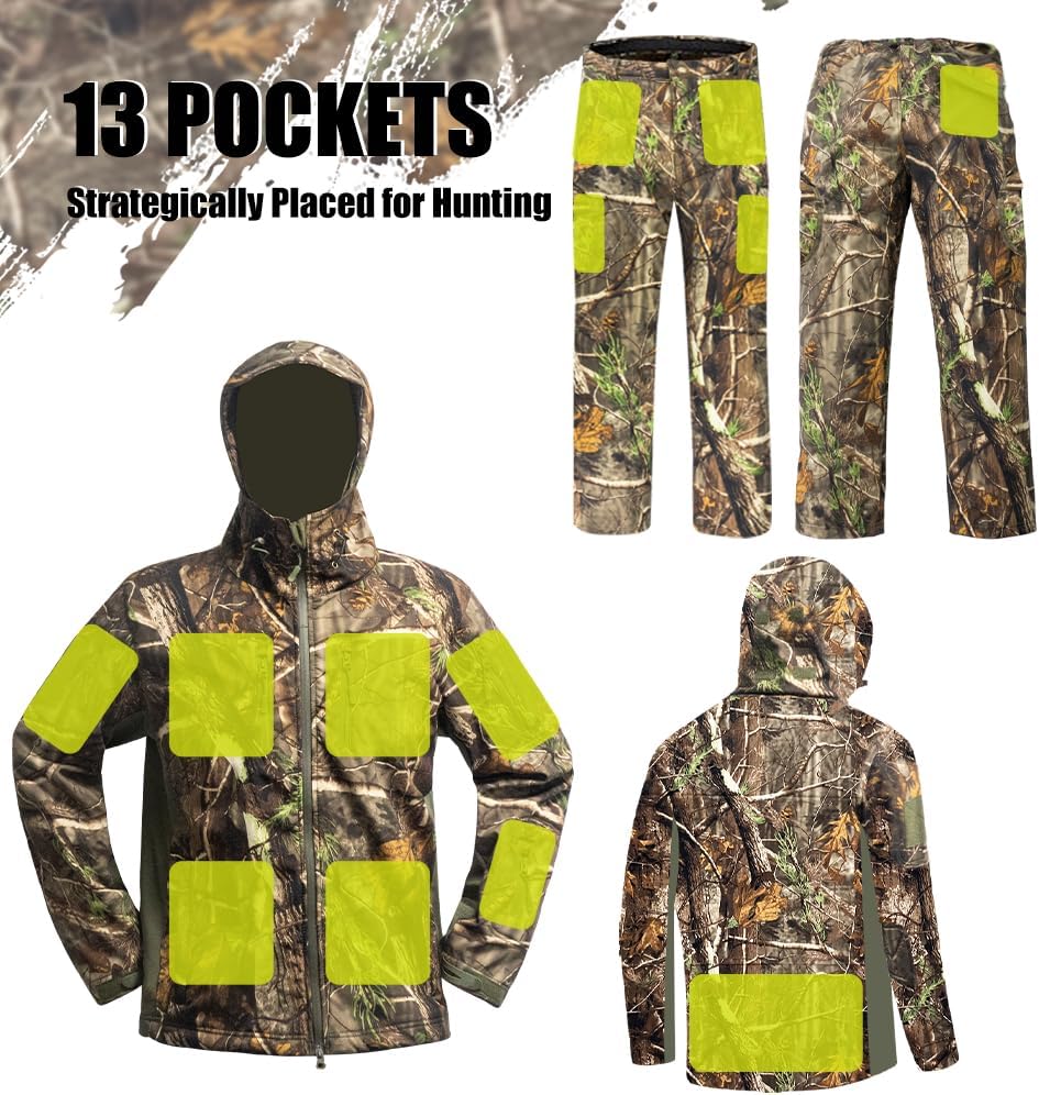 Perfectly suited for hunting various game such as deer, ducks, and elk, our camouflage jacket and pants are also great for tactical, hiking, camping, and off-road adventures. The safety strap compatible design (strap not included) adds an extra layer of security for treestand hunting. These hunting clothes for men cold weather are designed for versatility and durability.