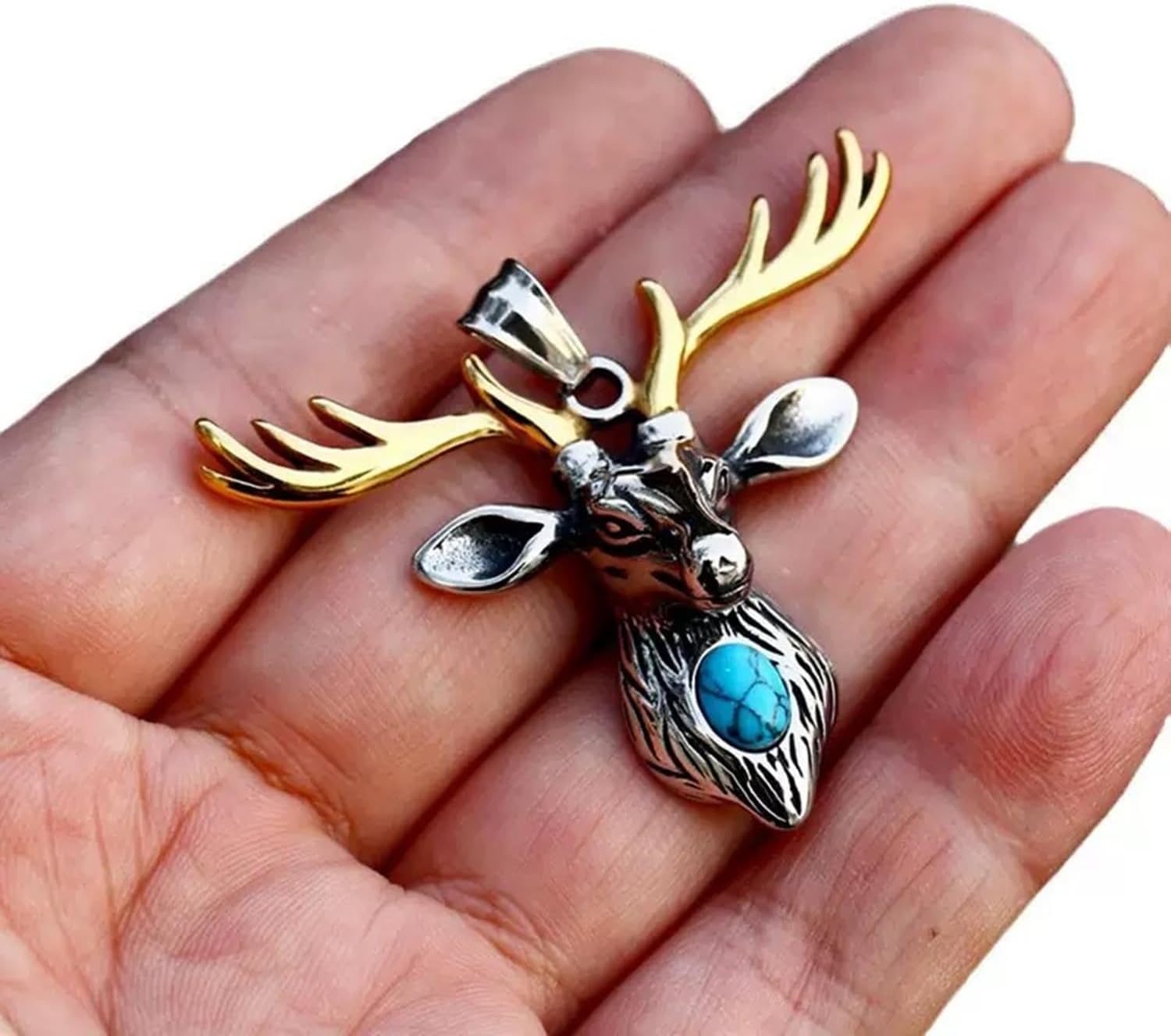 Brand : Cy trendy Product Description: Stainless Steel Vintage Deer Head /Cow Head Pendant Reindeer Necklace Pendant Size : Cow Pendant : 45 mm*45 mm,weight 26 g. Deer Pendant : 46 mm*50 mm,weight 18 g. Chain : 3 mm 24 box chain, 15 g weight . Color Type : Silver+Gold+Black Package Included: 1 Pendant + 1 necklace Material Type:316 stainless steel.It is resistant to rust and fading. Suitable for daily wear, outdoor, shower, gym and sports. Smooth shining finish. The high polish on the inner wall of the ring allows you to wear it comfortably and for a long time wherever you go . Resistant to discoloration, sweat, heat, tarnish, water, smudge. Please store your jewelry in a cool, dry place and avoid rubbing gold-plated items against each other to ensure your gold-plated bracelets are durable. Also try to avoid cleaning products and fragrances, which can negatively affect your jewelry. Suitable for sensitive skin and allergy prone skin. Will not irritate skin or cling to clothing. Please do not use if allergic to stainless steel. Cy trendy" Committed to the design and production of men's and women's jewelry , We love life and yearn for freedom Give out your brilliance every day , Don't need too many words Experience our jewelry and instantly open your charm .