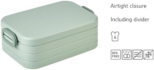 The Take a Break midi lunch box in a nutshell: robust, airtight, with practical clip closure and a divider. The Mepal Lunchbox Take a Break can be used to safely transport sandwiches and other snacks. The flexible and also completely removable divider prevents the sandwiches from slipping and helps to separate the contents. This makes it easy to take your own snacks and meals to work, school or simply on the go! The Mepal Take a Break lunch box has a completely removable lid with an integrated all-round sealing ring. In combination with the two closing clips on the sides, food stays fresh for longer. The lunch box is very robust, and it can be cleaned in the dishwasher after use. The lunchbox is available in different colours and sizes.