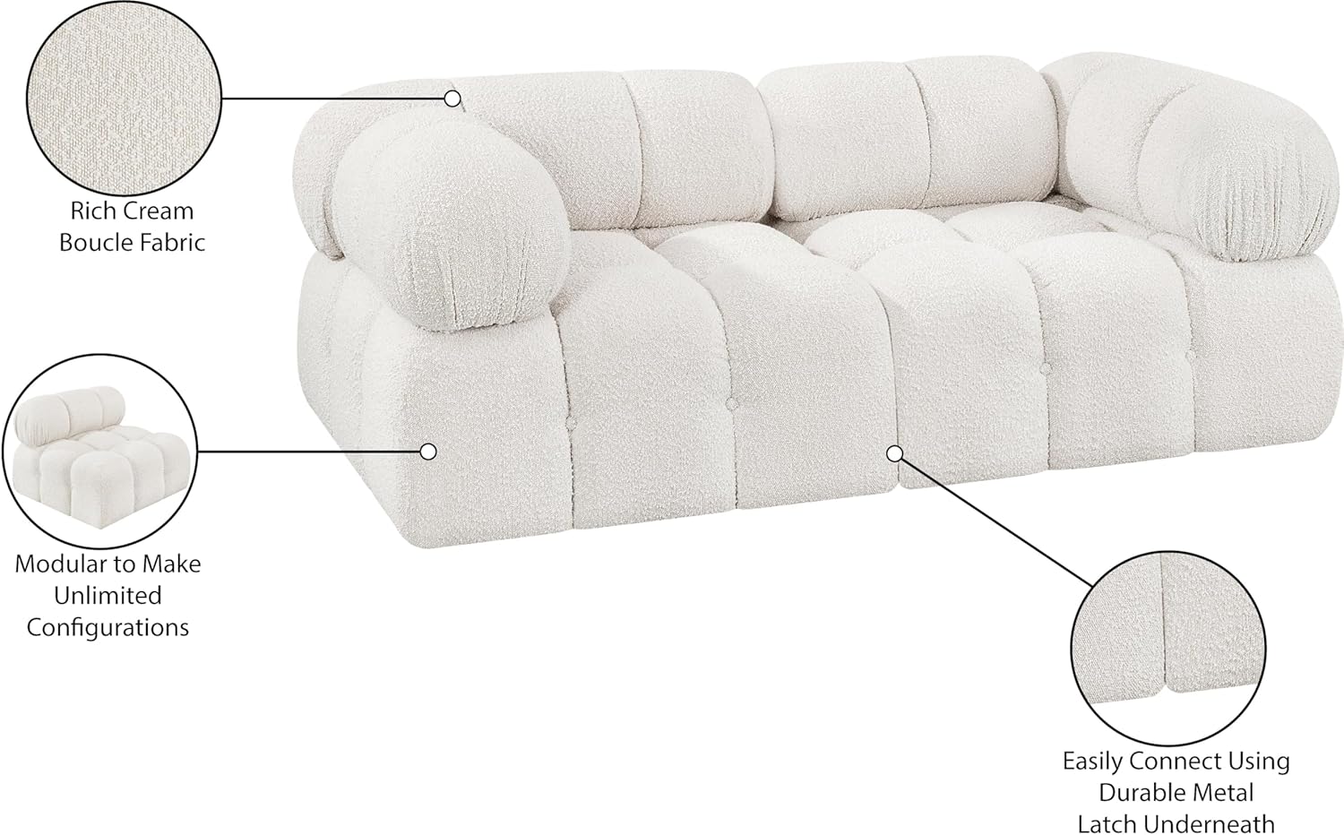 | Additional Features | Easily Attach Using Included Latches, Modular To Create Infinite Configurations, Rich Cream Boucle Fabric |