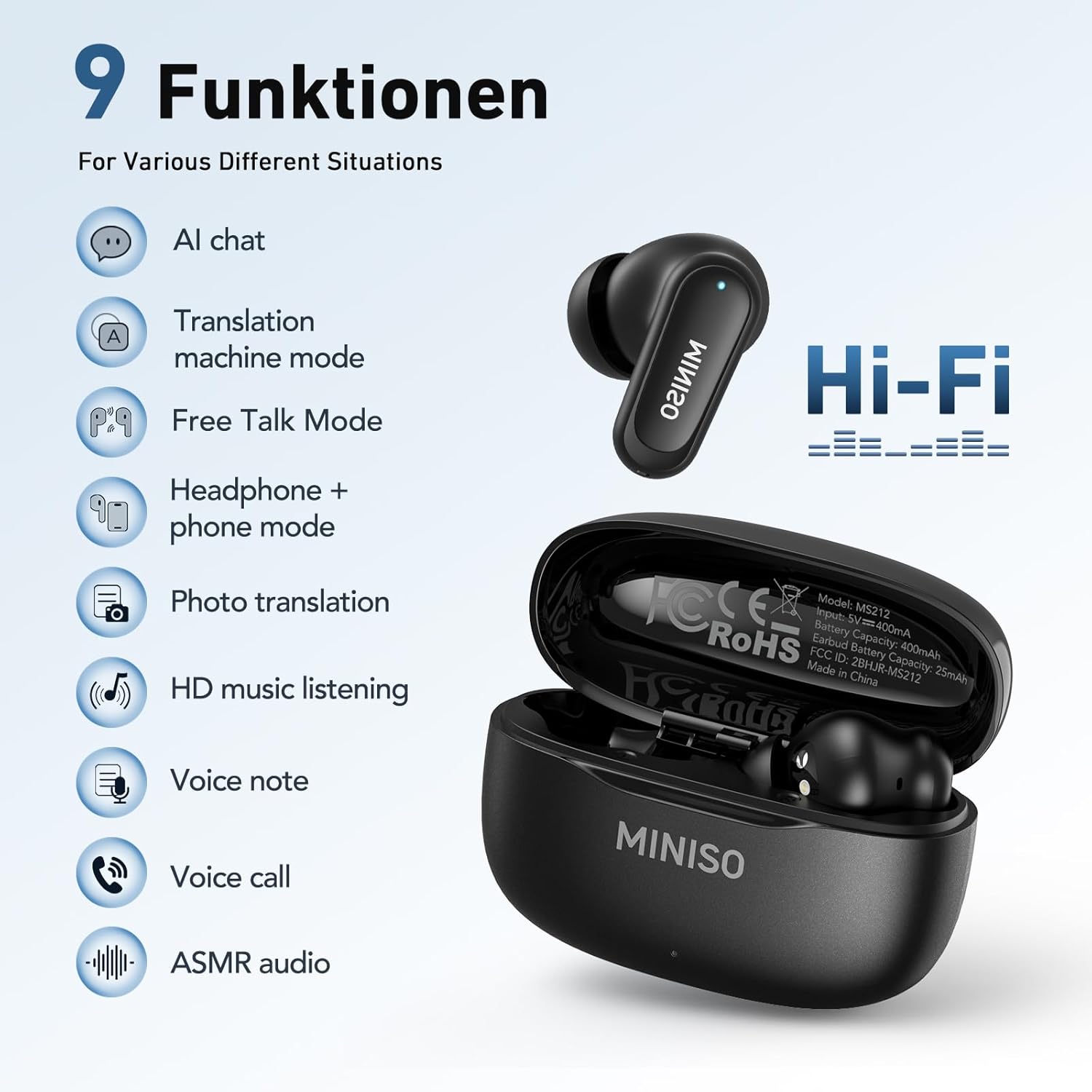 | BuiltIn Media | Miniso MS112 earbuds, Charging box, Charging cable, User Manual, Packaging box |