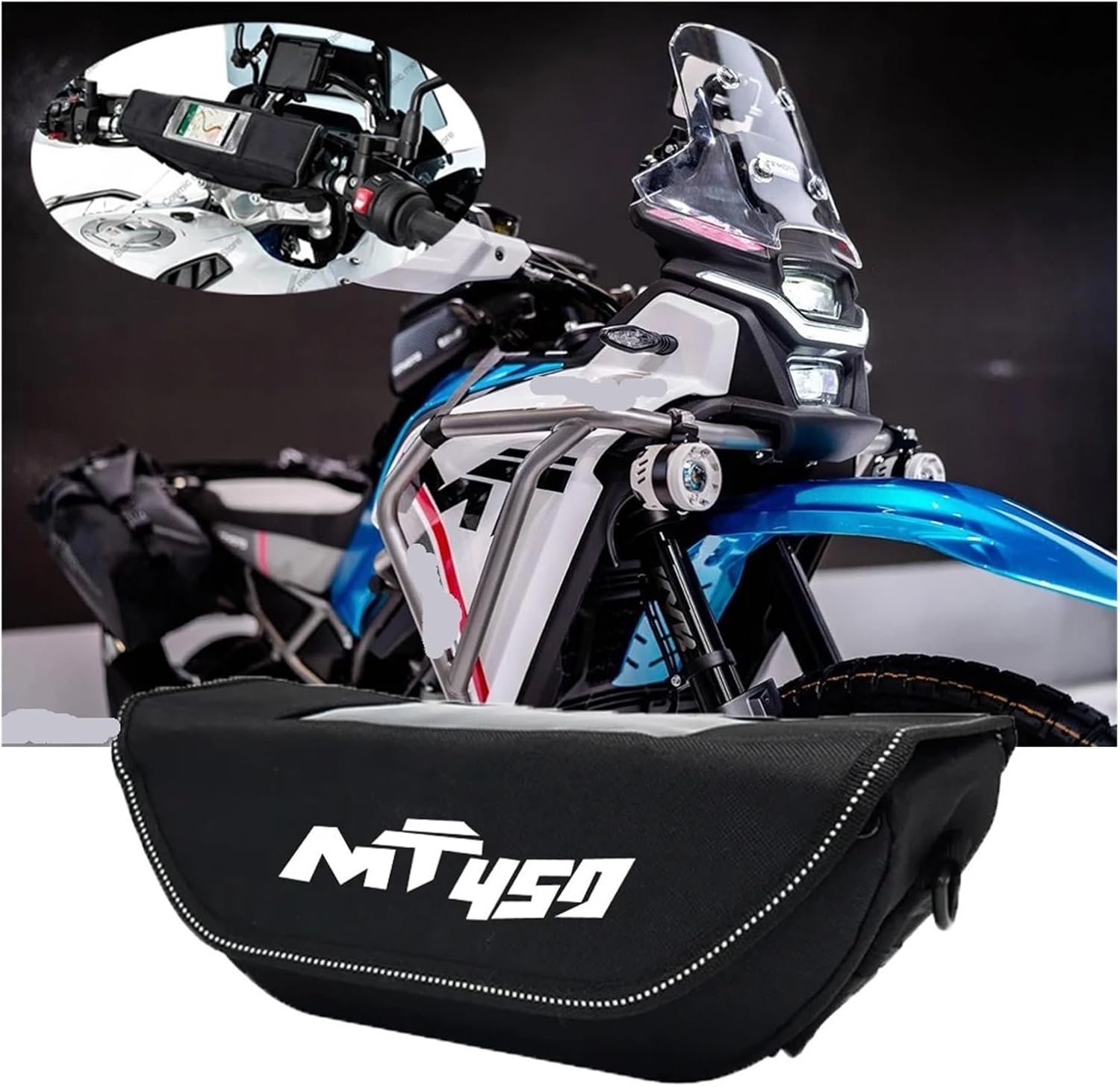 Motorcycle Handlebar Travel Bag Motorcycle Waterproof And Dustproof Handlebar Storage Bag Compatible With 450 MTDesigned Compatible with motorcycle riding enthusiasts, our motorcycle Handlebar bag combines fashion, practicality and durability. Whether you are on a long ride or a short outing, this Handlebar bag will meet your needs and make your riding trip easier and more convenient.Condition:100% brand newInstallation: simple installationMaterial: Nylon,SpandexltemPurpose: A functional handlebar bag specially developed Compatible with motorcycle models, In order to allow the mobile phone to be charged on the move, the bag has a waterproof cable inlet.Colour: BlackFitment:Compatible with CFMOTO 450 MTFeatures:-Easy to install:no explanation required.-Waterproof design: The large main compartment is closed by a waterproof and dustproof zipper. In order to allow the mobile phone to be charged while on the move,the package is equipped with a waterproof cable connector. In a watery environment,it can effectively provide a safe and reliable connector connector.-Large capacity design: The Handlebar bag can easily store your cell phone, wallet, keys, water bottle, gloves and othercommonly used items.Notice:Please pay attention to whether this item is suitable Compatible with your motorcycle and model before buying.Hign-concerned Chemical : NoneModel Name : Compatible with CFMOTO 450 MTOrigin : Mainland ChinaItem Type : Covers & Ornamental MouldingsMaterial : nylon