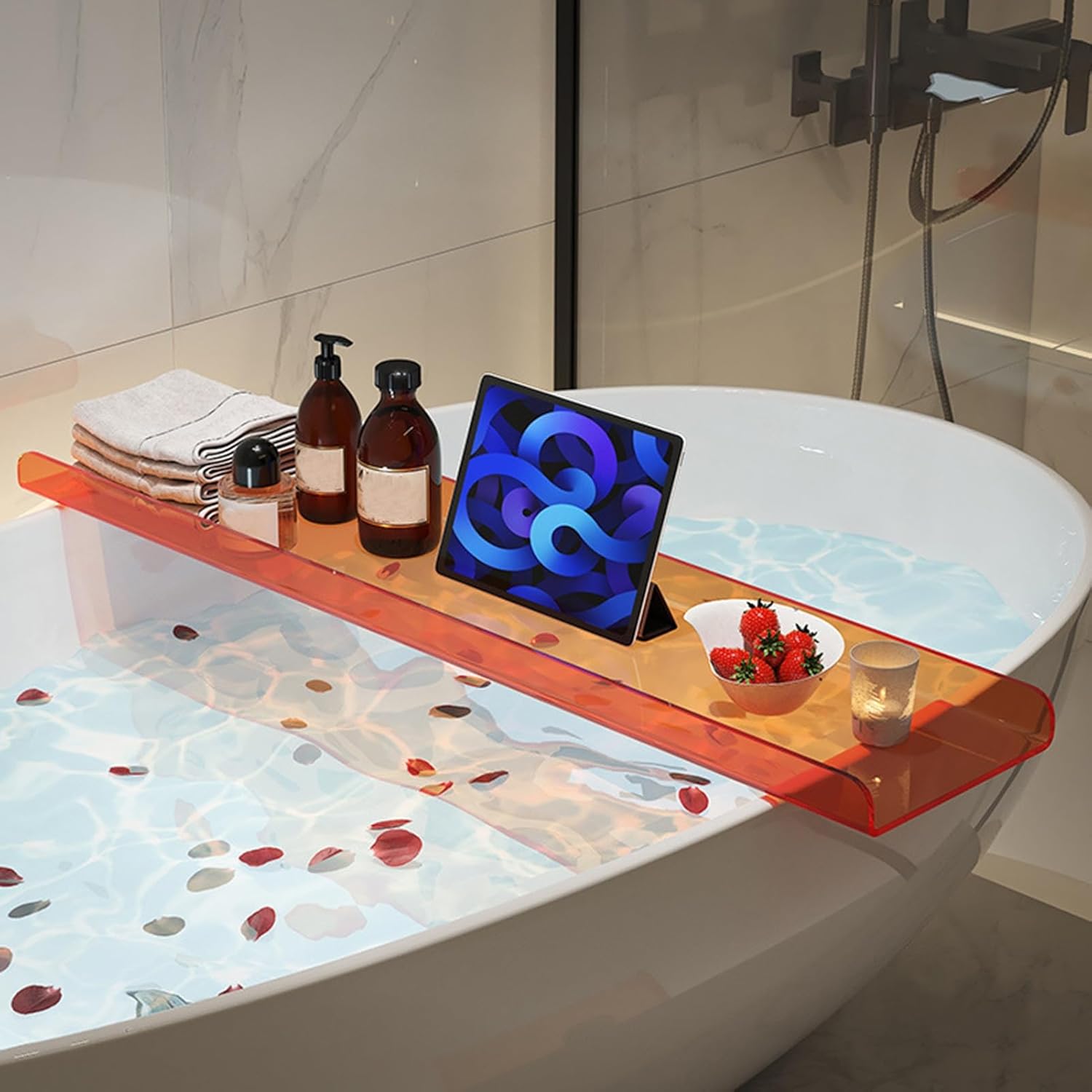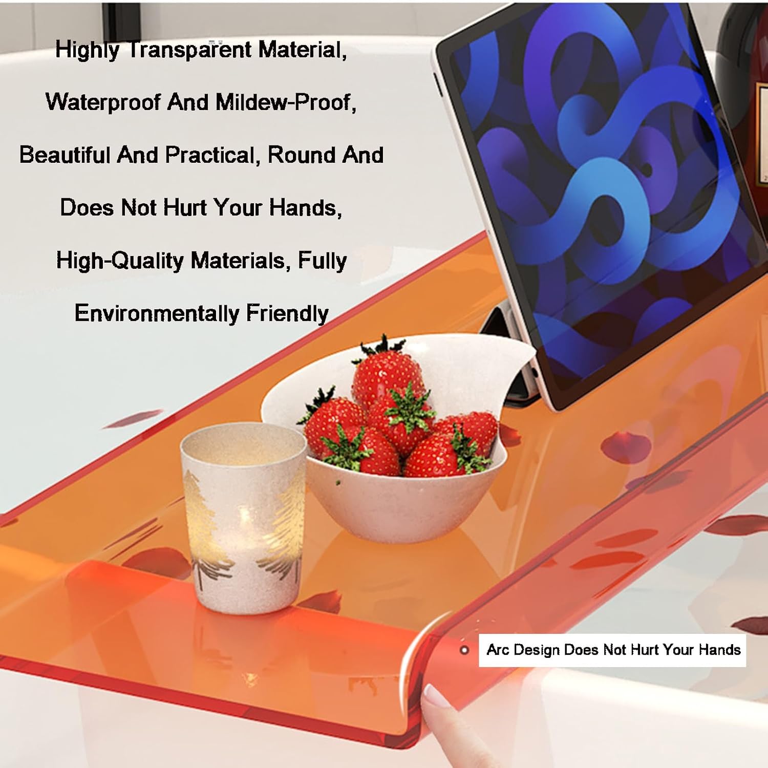 Product DescriptionThis simple and convenient bathroom tray provides a practical solution for organizing bath and shower essentials, keeping them easily accessible and within easy reach. It fits perfectly in most bathtubs or showers and is ideal for storing a variety of bath supplies.Features:Name: Foldable Bathtub Tray / Bathtub Tray / Bathtub Shelf / Bathroom Accessories / Bathtub Drain Tray / Bathtub Tray OrganizerMade of: PlasticProduct Dimensions: As shown in the pictureColor: As shown in the pictureApplicable Place: BathroomFunction: Stores various bath suppliesPackage:1 x Bathtub Storage Tray, 1 AccessoryPlease Note:1. Actual color may vary slightly due to monitor and lighting conditions. Measurements may vary slightly by 1-2 cm.2. Items other than the bathtub storage tray are for props only.