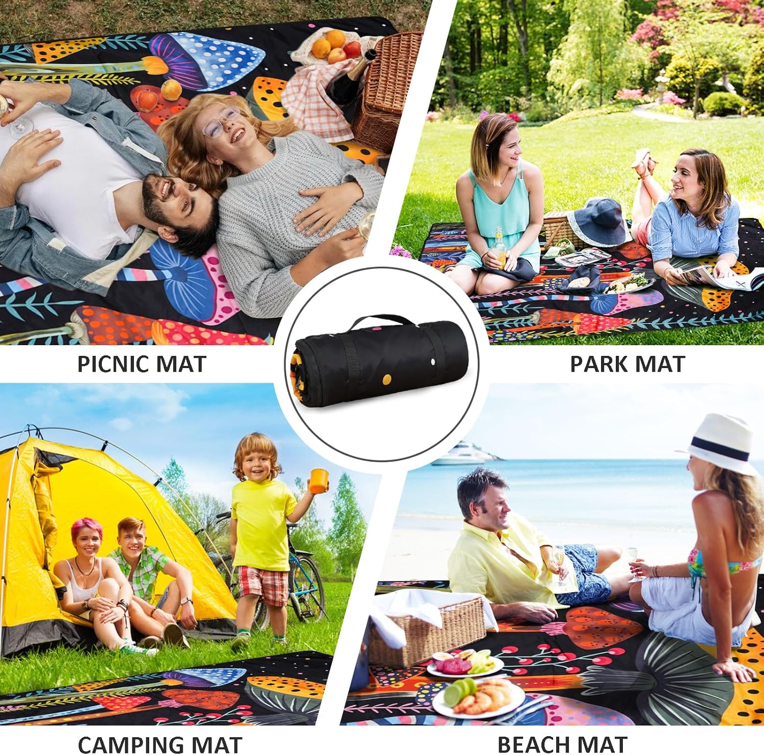 Mushroom Picnic Blankets Waterproof Foldable Picnic Blanket 80"x 60" Picnic Mat 3-Layer Thicking Outdoor Picnic Blanket Sandproof Lightweight Beach Picnic Blanket with Strap Machine Washable